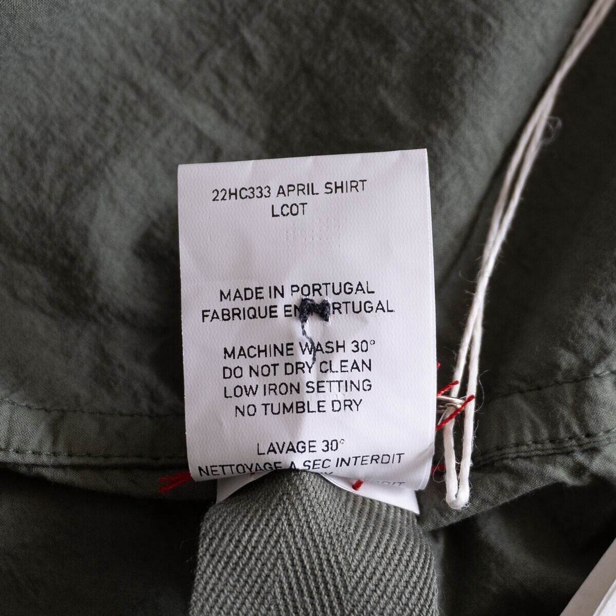風合い豊かなコットン素材を使用したエイプリルシャツです。お色はカーキ。良い物をお探しの方は是非。