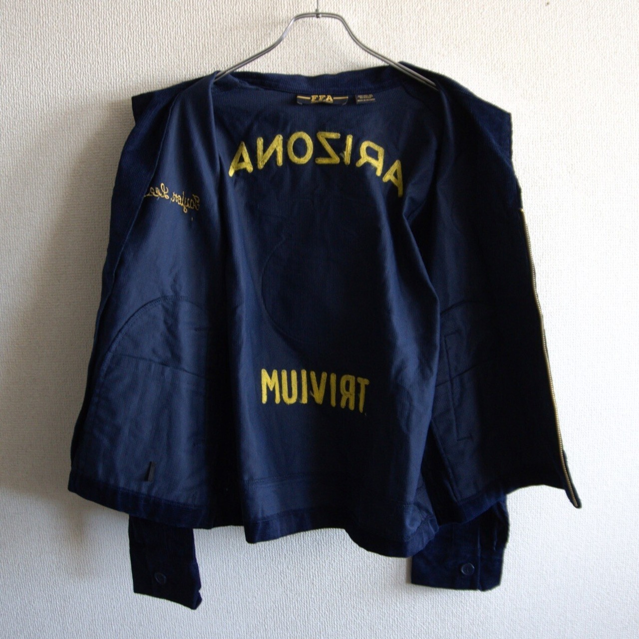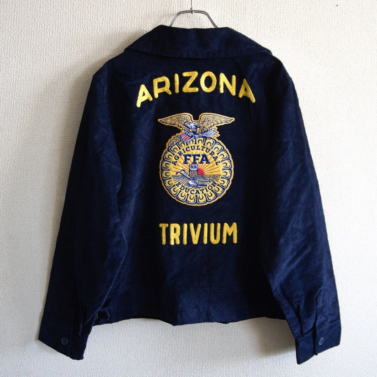 FFAとはFuture Farmars of Americaの頭文字をとった略称でアメリカ合衆国学校農業クラブ連盟のことを指します、『みんなでアメリカの農業の未来を考えていきましょう』という意味になります。その団体のユニフォームとして使用されていたのがこのFFAジャケットです。カラーは紺をベースに前後にはFFAのワッペン後ろにはワッペンの上に各州のチェーンステッチが入っています。