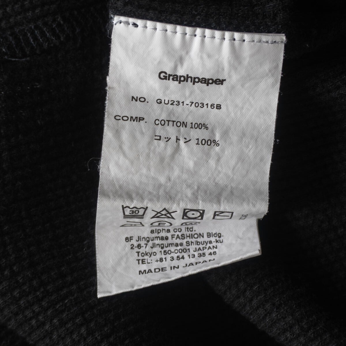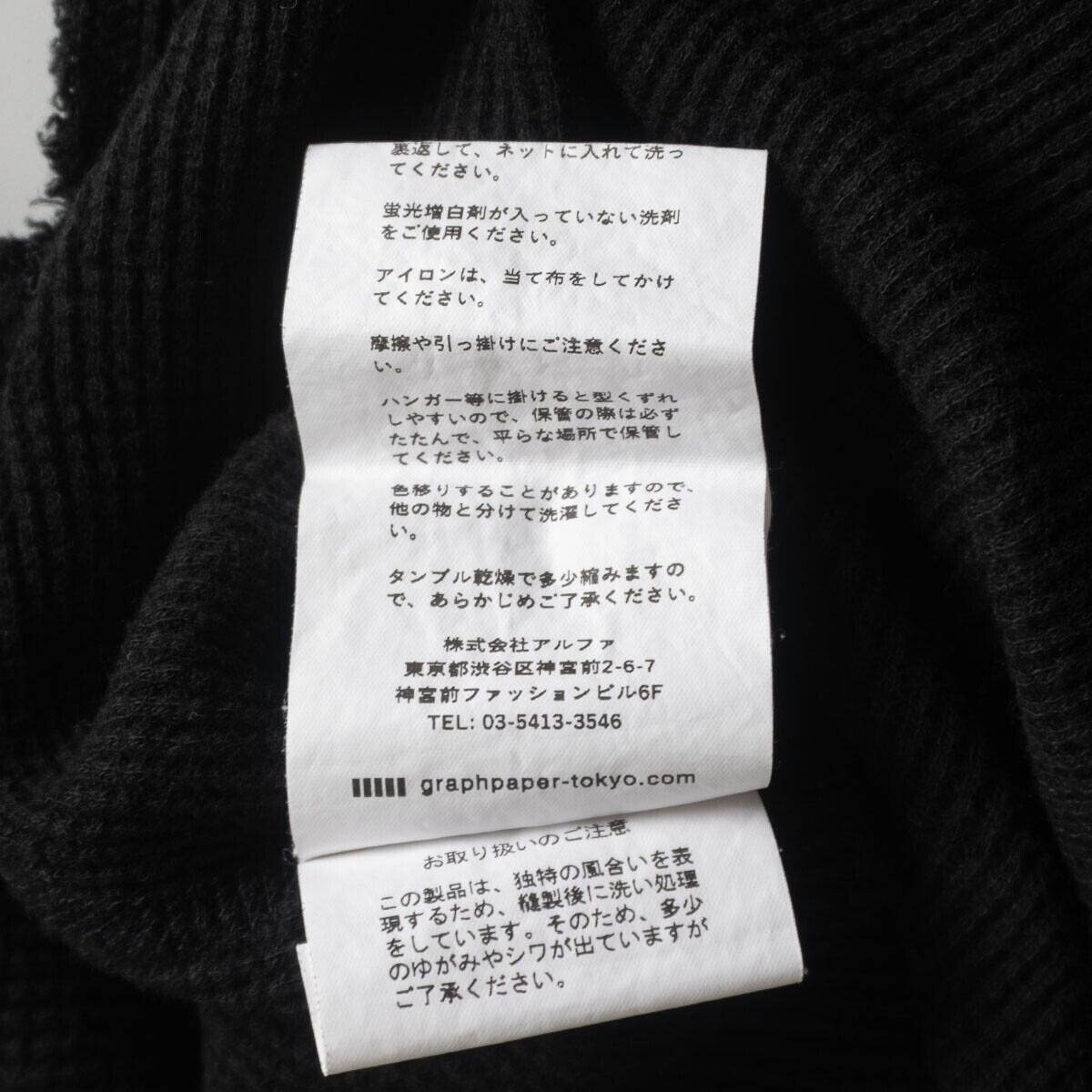 【美品】GRAPHPAPER【Waffle S/S Crew Neck Tee】F ワッフル Tシャツ ブラック グラフペーパー 25090265