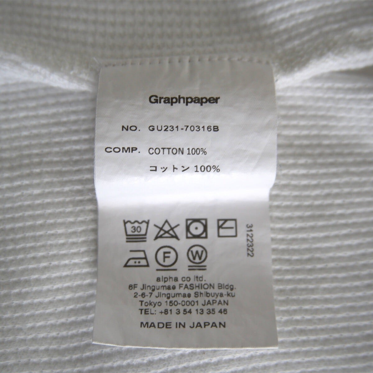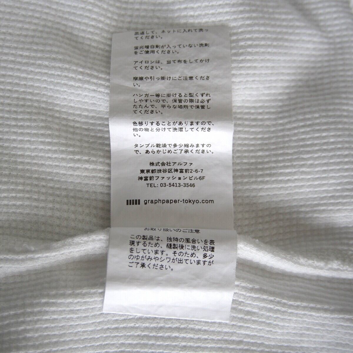 【美品】GRAPHPAPER【Waffle S/S Crew Neck Tee】F ワッフル Tシャツ ホワイト グラフペーパー 25090266