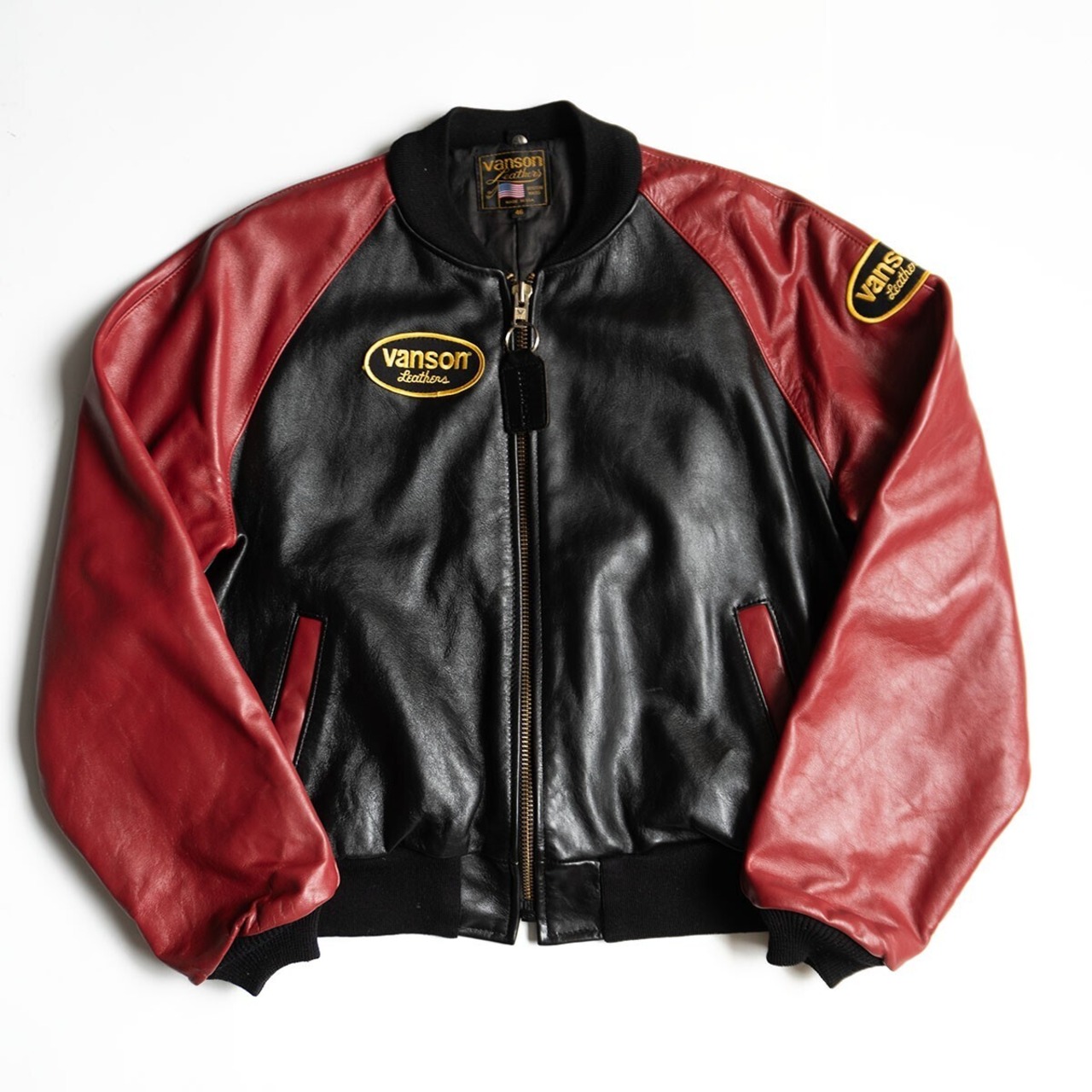 【美品/ビッグサイズ】 VANSON 【TJV オールレザー スタジャン】46 ブラック レッド ジャケット ワッペン USA製 バンソン 25090379