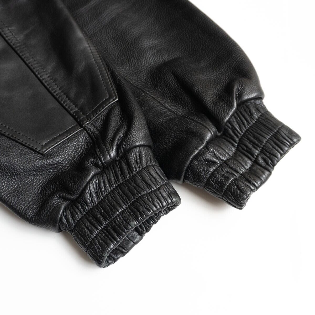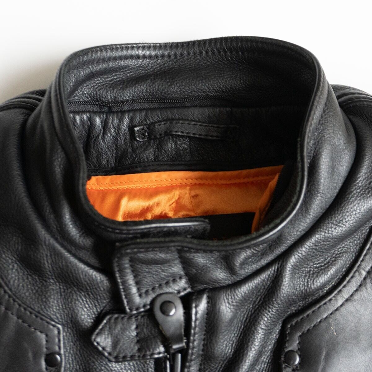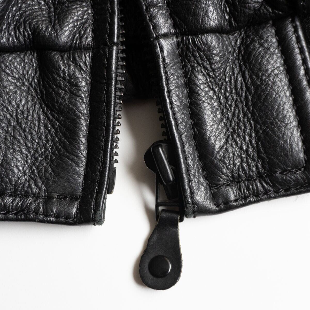 肉厚な牛革を使用したライダースジャケット。武骨なデザイン、お色はブラックです。