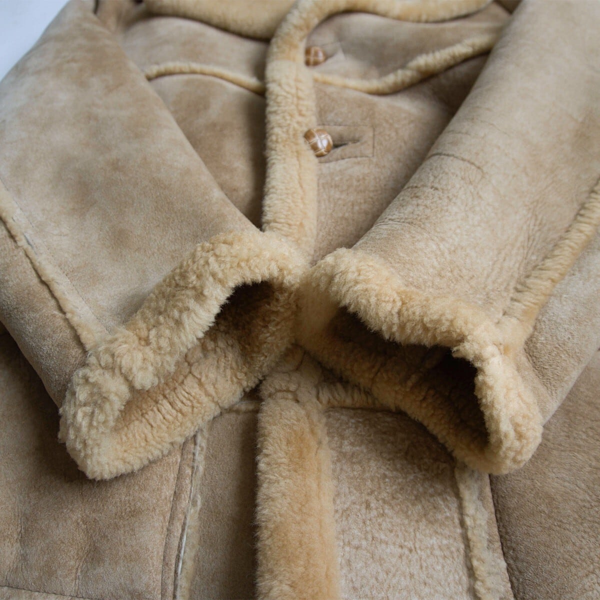 ボディには肉厚ながらモチっとした弾力性を持つ上質のシープスキン(羊革)が使用されております。裏地にはふかふかのムートンボアが敷き詰められ最高の着心地・防寒性を誇ります。