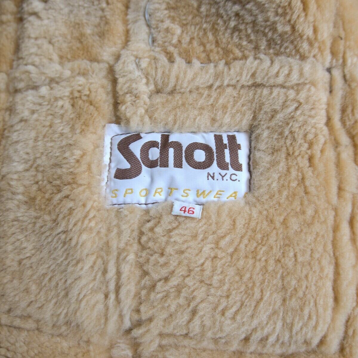 【雰囲気抜群/ビッグサイズ】SCHOTT【ムートン ボア コート】46 ベージュ ショット レザー ジャケット 25090392