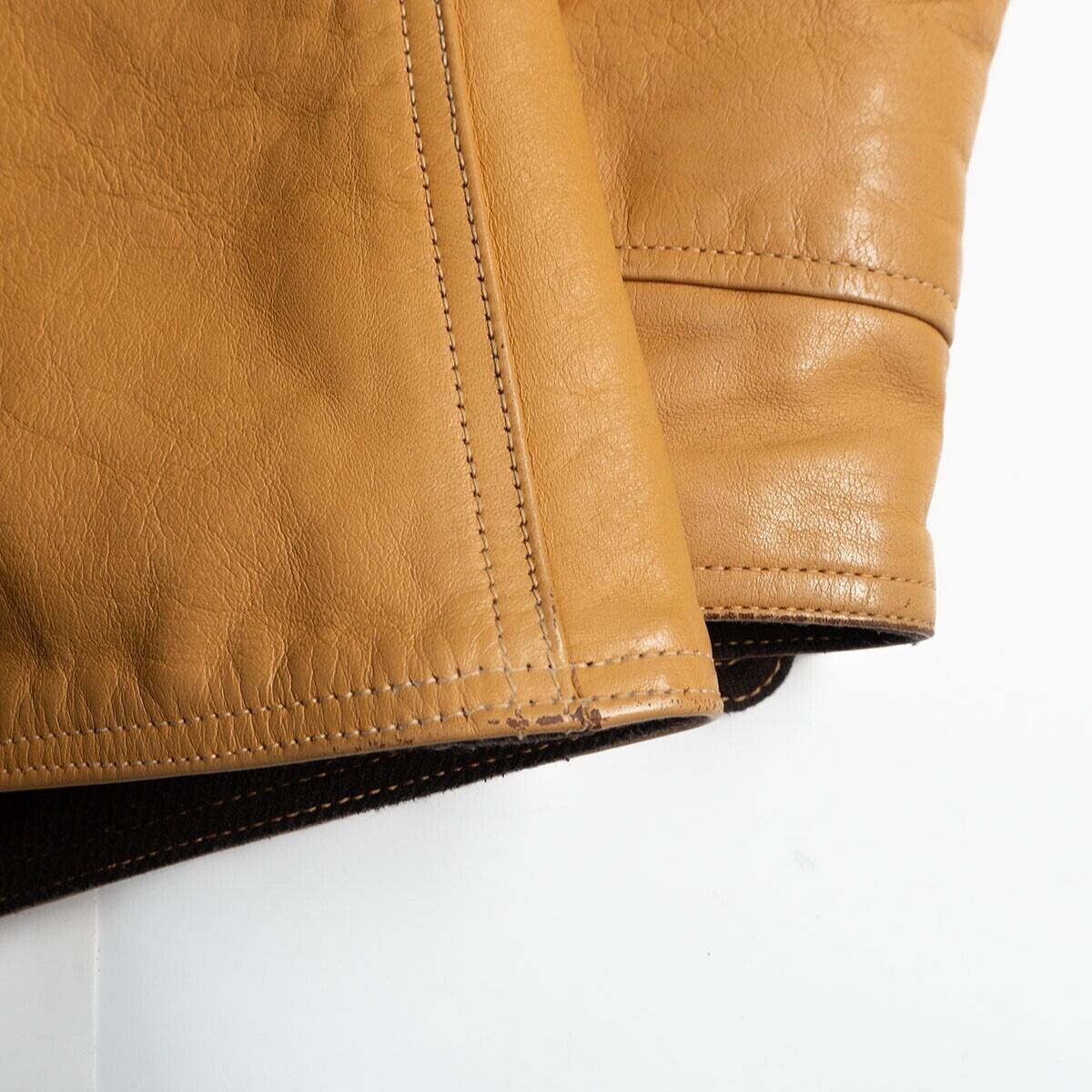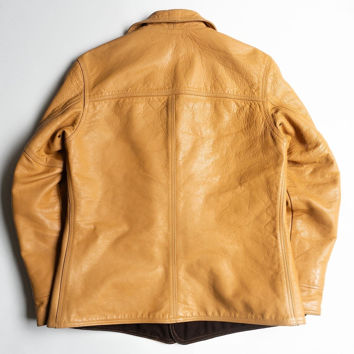 鉄道の操車場を意味するスイッチヤード、そこで働く鉄道作業員が使用するワークウェアをモチーフに作られたレザーハーフコートです。1920年~30年代にはこの手のレザーハーフコートが数多く存在していたそうで、ビンテージ古着でも時々見かけることもあります。このスイッチヤードコートはそういったアイテムを基にオリジナルのデザインで作られていますが、まるでその当時にあったビンテージのような雰囲気、仕上がりになっています。