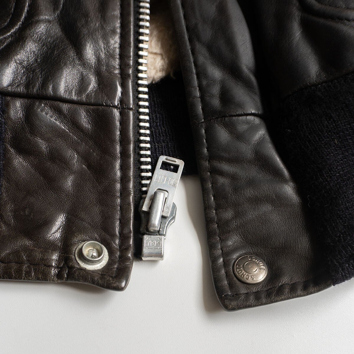 襟ボアが付いたショットのクラシックモデル。ウエスト、袖のニットリブも非常にしっかりしており、風の進入を許しません。自分だけのエイジングが出てくるまで、じっくりと育て上げたい一着です。お探しの方や気になる方は是非。