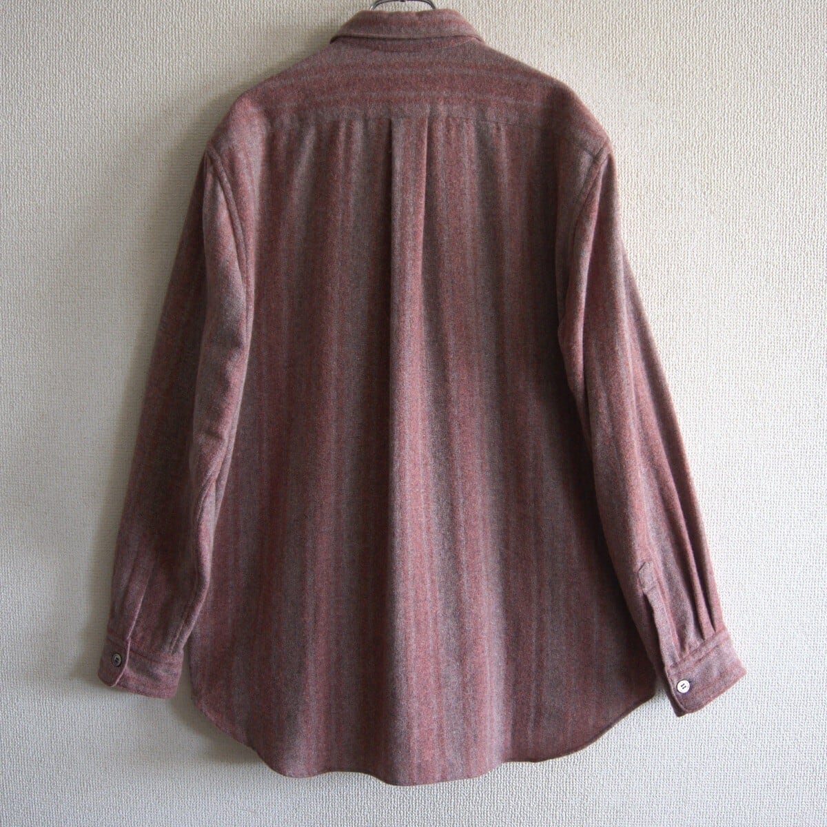 ラウンドシルエットのウールストライプシャツでございます。ゆったりとしたサイズ感です。良い物をお探しの方は是非。