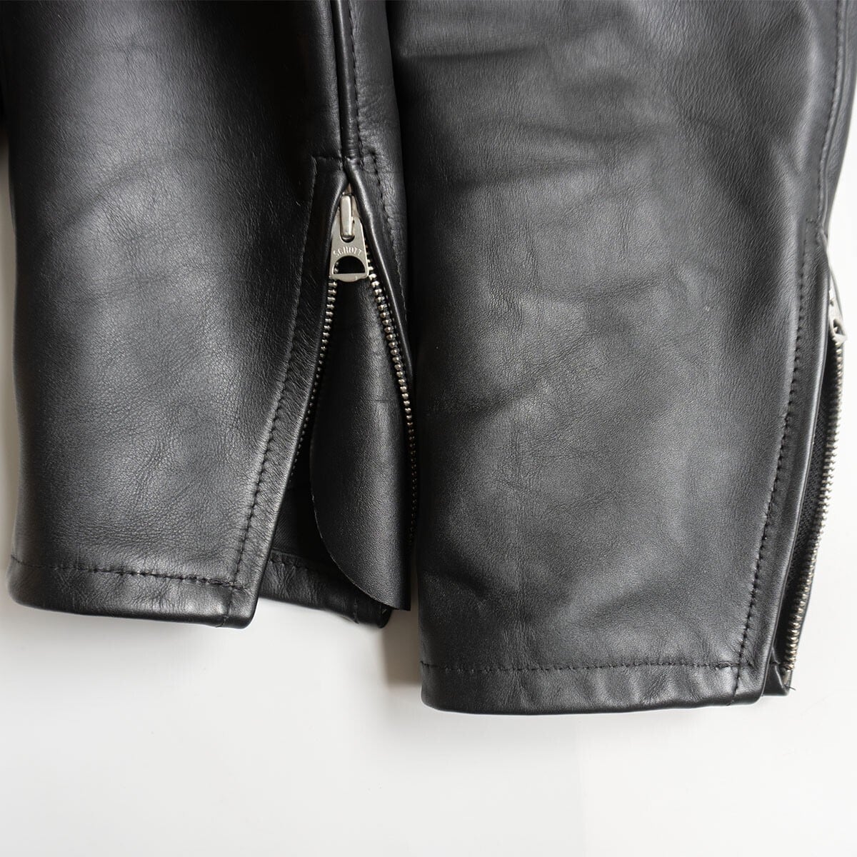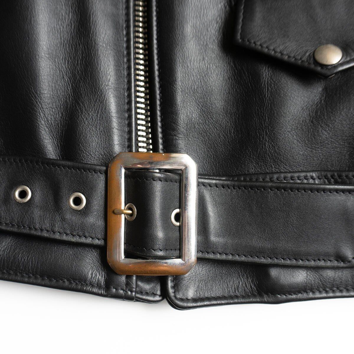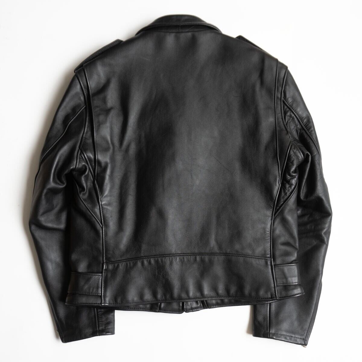 ショットのフラッグシップモデルである、ワンスターライダースジャケットの着丈を長くし、全体をすっきりとさせています。袖のジッパー部は腕時計やアクセサリーの干渉を抑える為にきりっぱなしにしております。お探しの方や気になる方は是非。