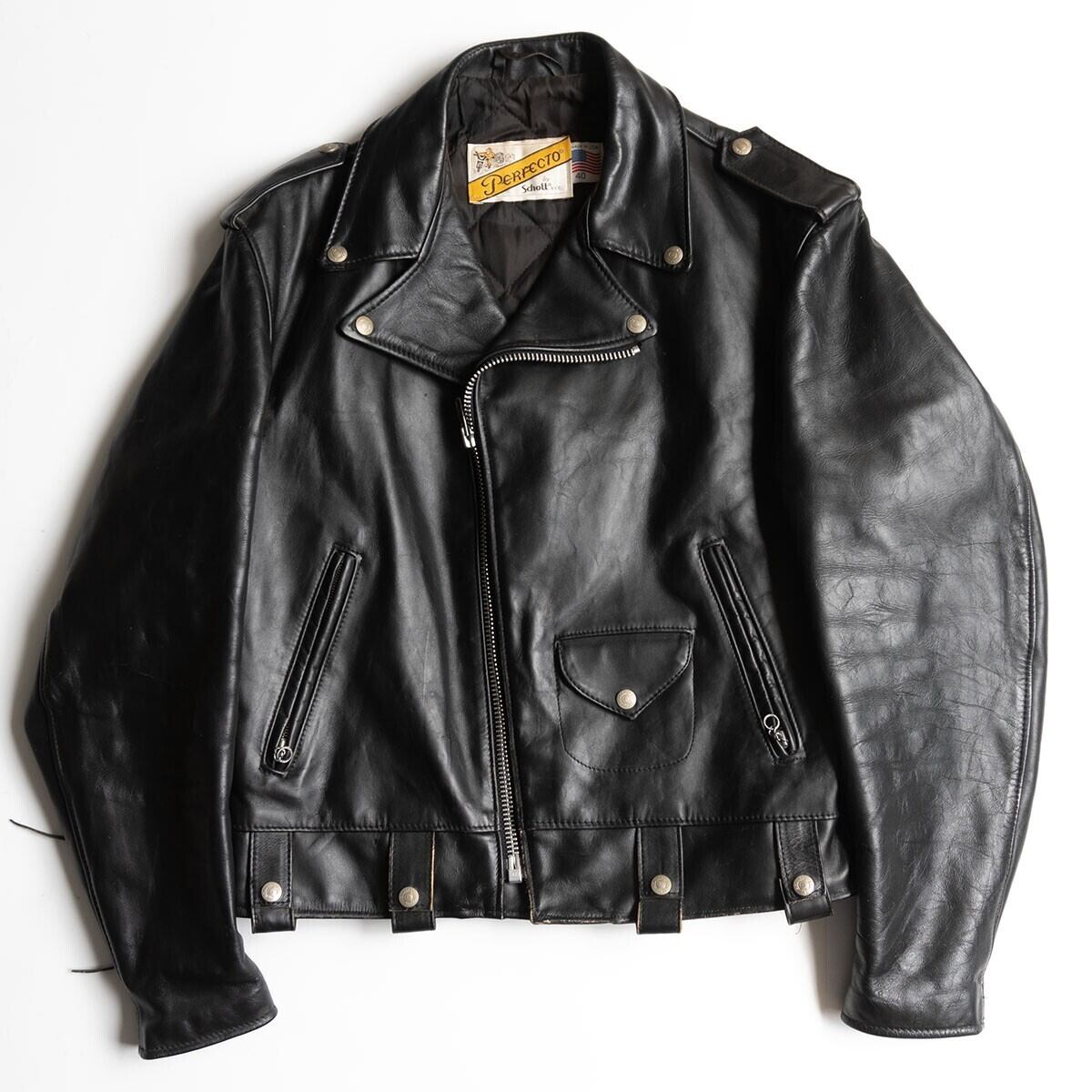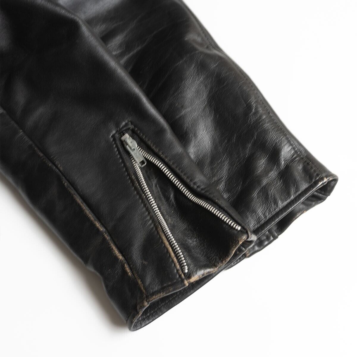 SCHOTTの代名詞的存在であるダブルライダースジャケットです。こちらは裾の両サイドのがレースアップになっており、オリジナルのレザーレースが付属しています。裾にはウエストベルトはなく、ポリスマンジャケットのようなベルトループが付いています。出回りの少ない希少モデルです。お探しの方や気になる方は是非。