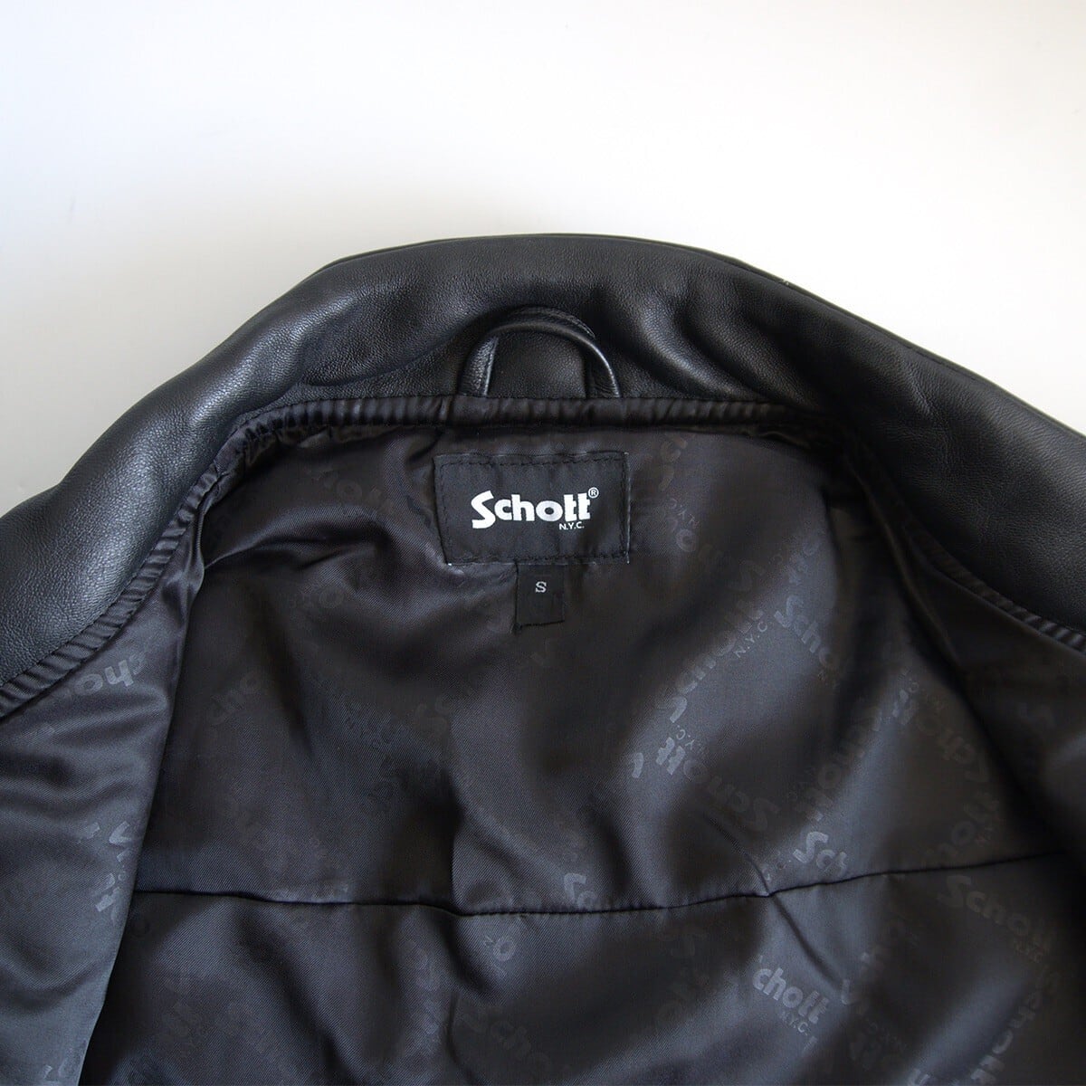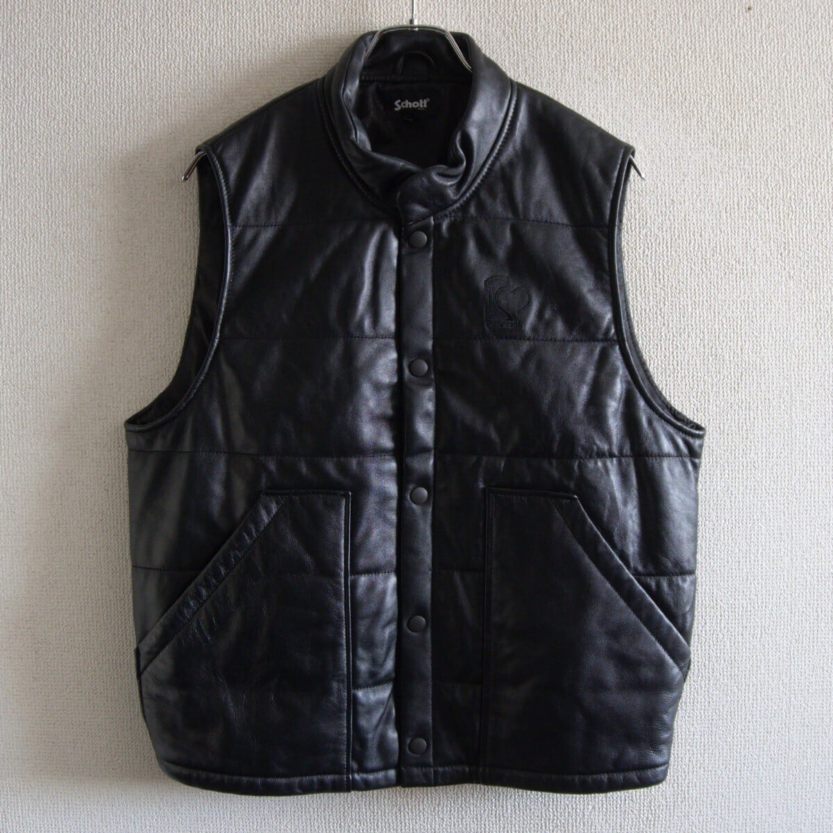 【美品】SCHOTT【LEATHER PADDING VEST "ORIGINAL HEART"】S レザー ベスト ブラック ショット 25090492