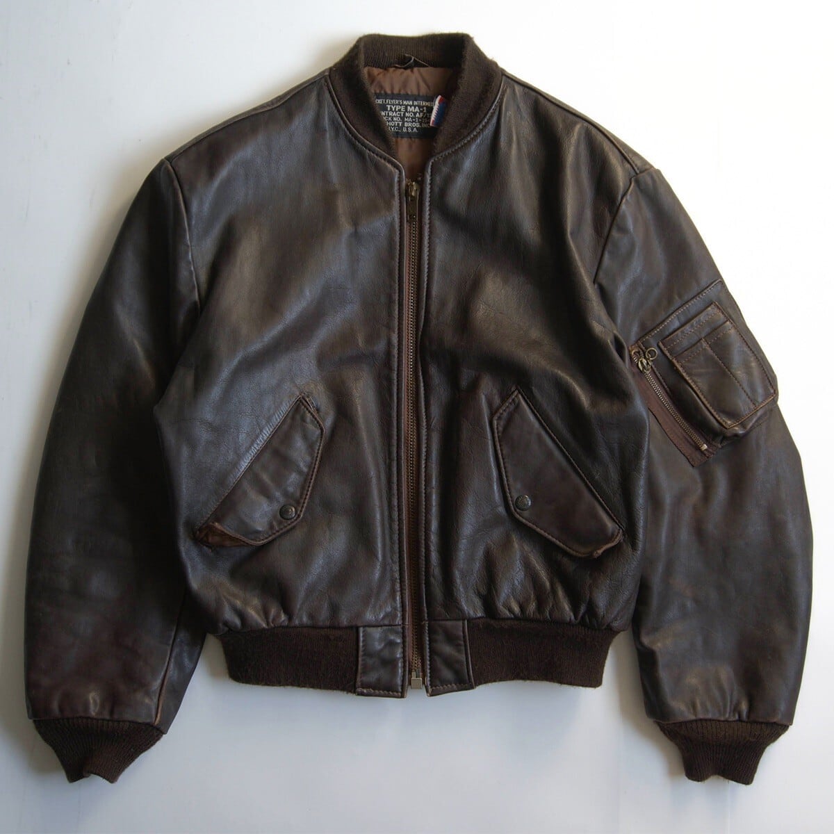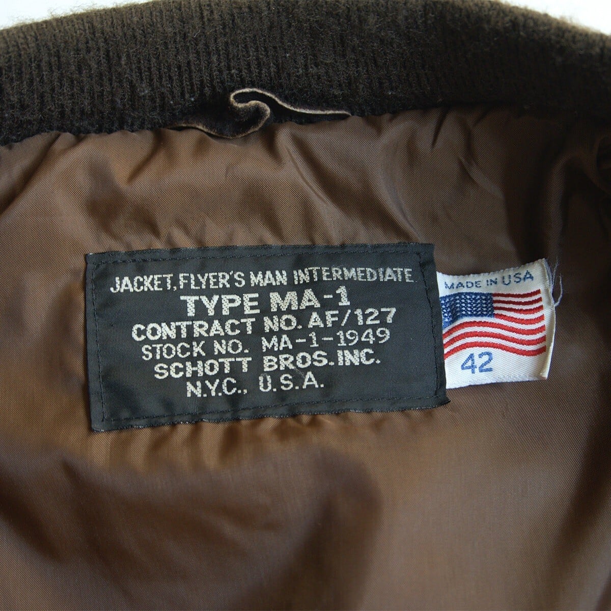 【雰囲気抜群/ビッグサイズ】SCHOTT【TYPE MA-1 レザー フライトジャケット】42 ブラウン ショット 25090437