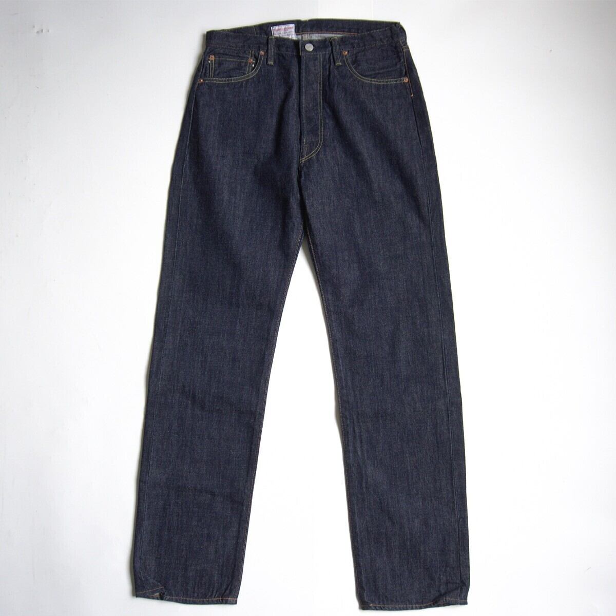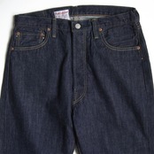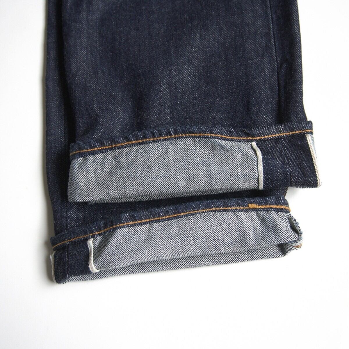 1950年代後半から1960年代に掛けて、ジーンズはより都会的なスリムフィットが支持されるが、その契機となったのは、映画 「THE WILD ONE=乱暴者」における、マーロン・ブランドの1本だった。当時、まだワークパンツ然とした太幅シルエットのジーンズを劇中では一度縫製を解いて、細身に仕立て直していたことが、ロールアップした際にアウトシーム裏が規格外に太いことから判る。その仕立てを再現した秀逸な1本。お探しの方や気になる方は是非。