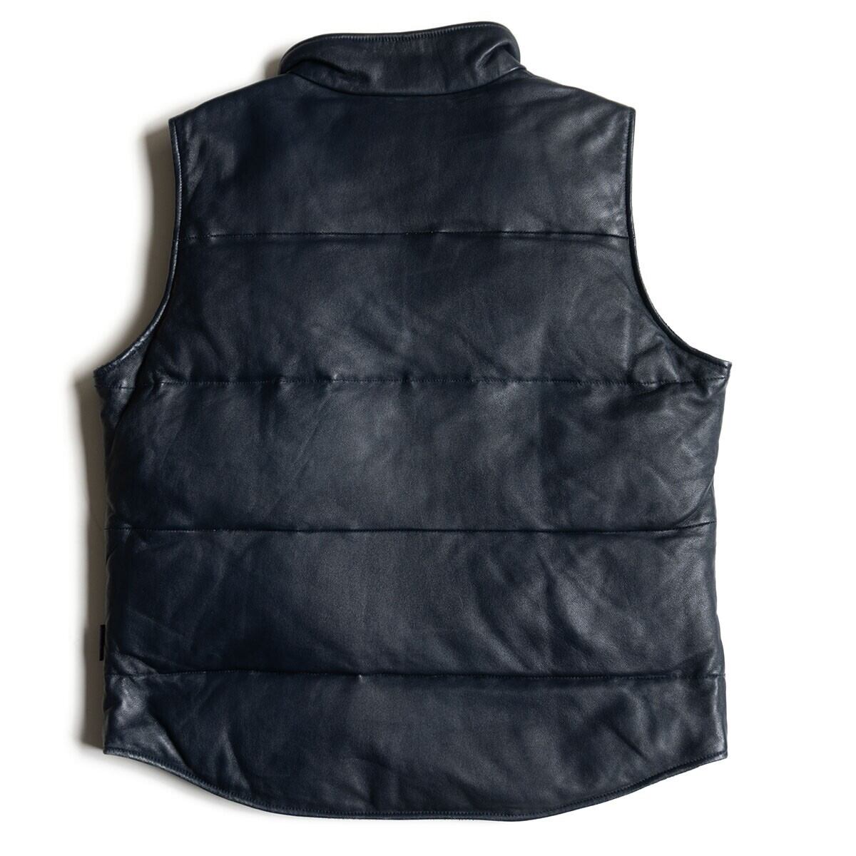 【美品】SINA COVA【シープスキン レザー ダウン ベスト】LLシナコバ ワッペン ネイビー 羊革 25090532