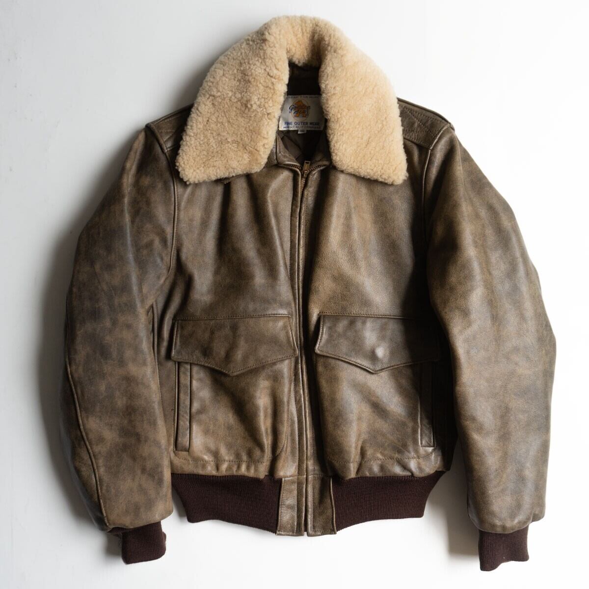 ゴールデンベアの希少なUSA製のG-1レザーフライトジャケットです。全体にレザーが擦れたような加工が施された雰囲気抜群の1着。お探しの方や気になる方は是非。
