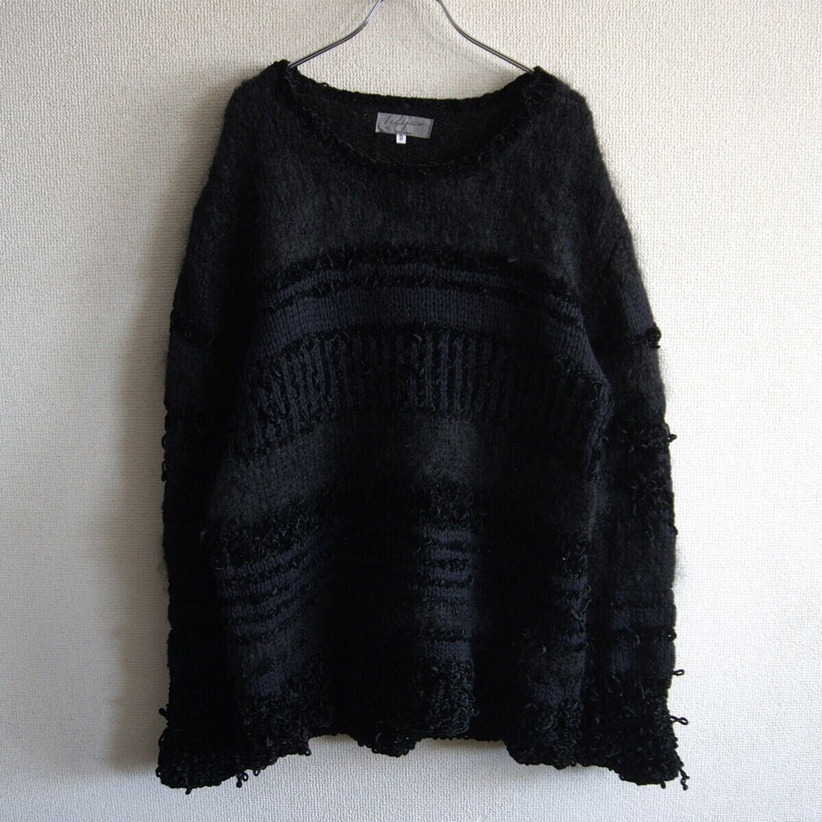 ヨウジヤマモトプールオムのデザインボーダーニット。お色はブラックです。お探しの方や気になる方は是非。