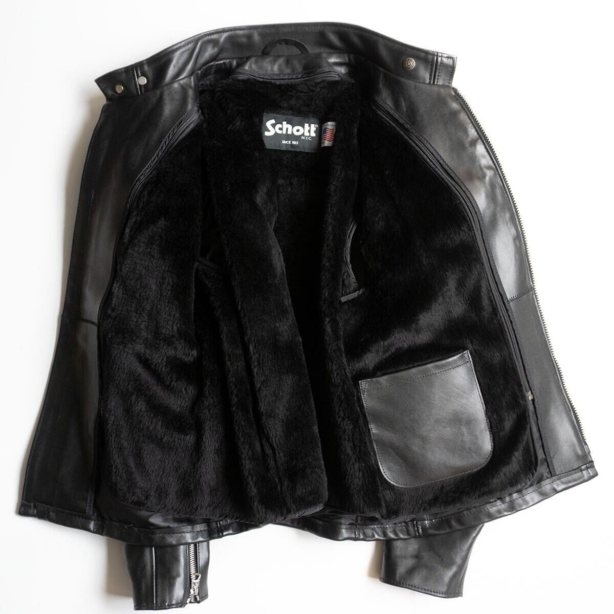 【美品/ビッグサイズ】SCHOTT【641/シングルライダースジャケット】44 ボアライナー付き レザー アメリカ製 ショット 25090745