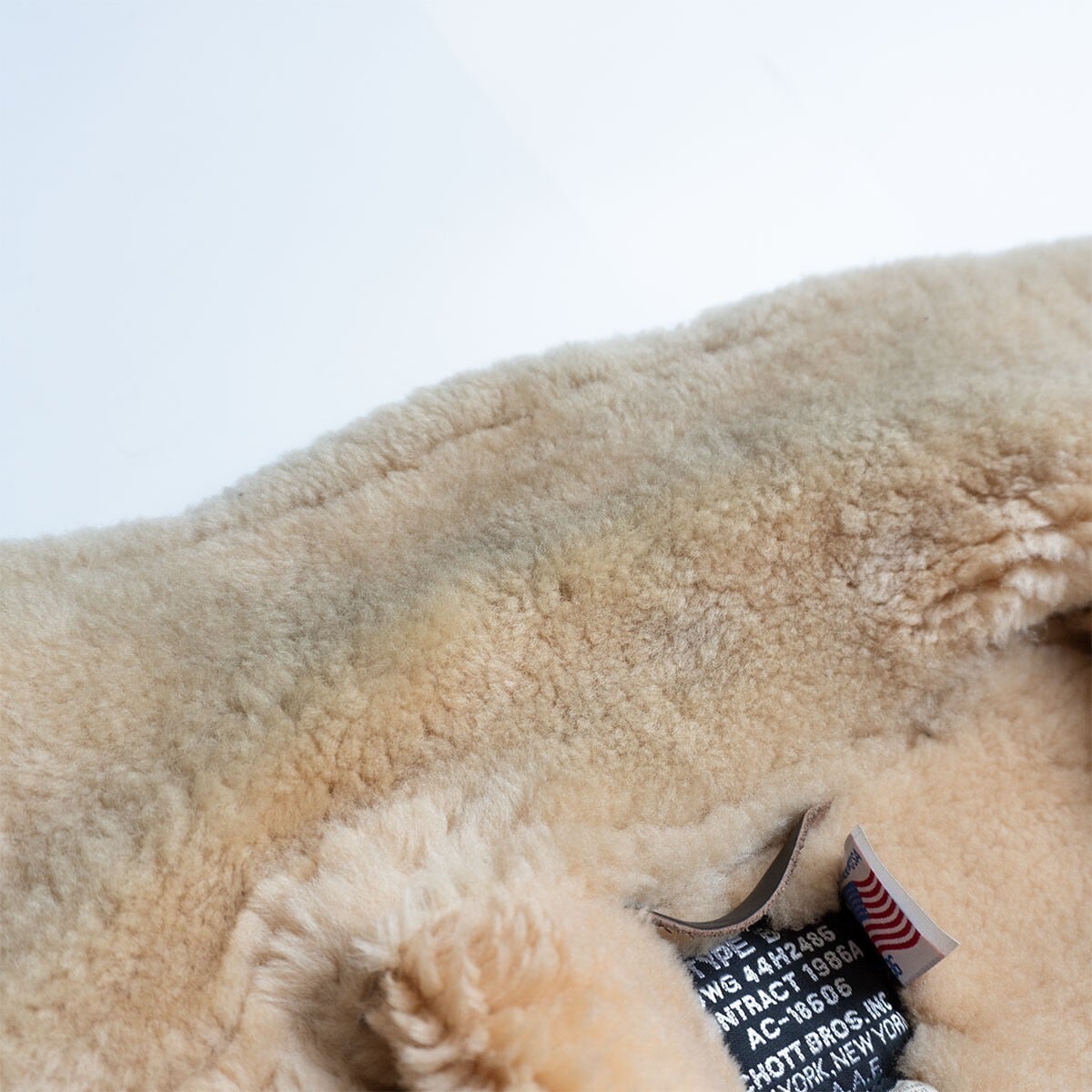 ボディには肉厚ながらモチっとした弾力性を持つ上質のシープスキン(羊革)が使用されております。裏地にはふかふかのムートンボアが敷き詰められ最高の着心地・防寒性を誇ります。