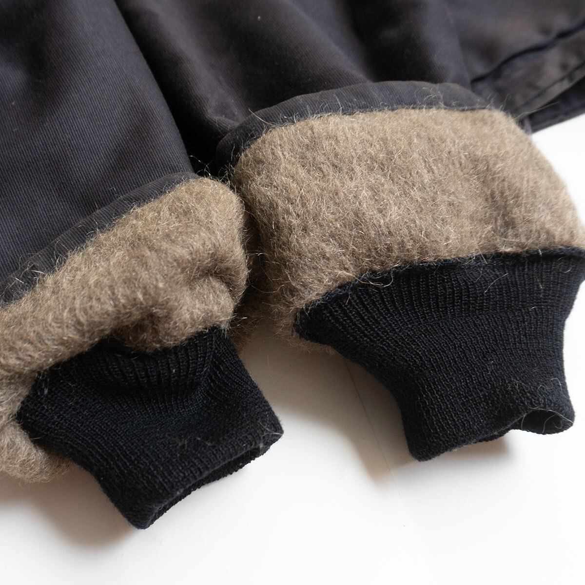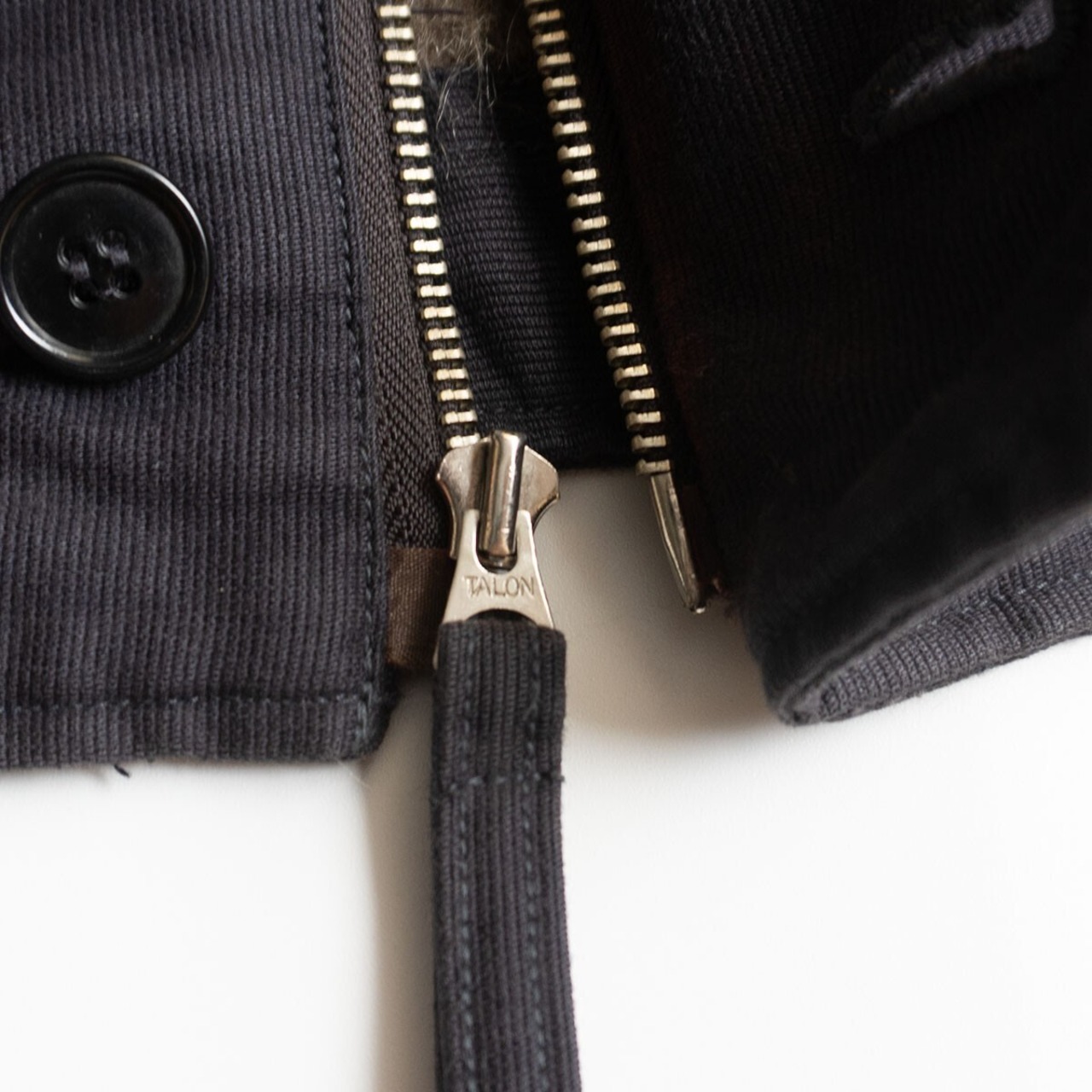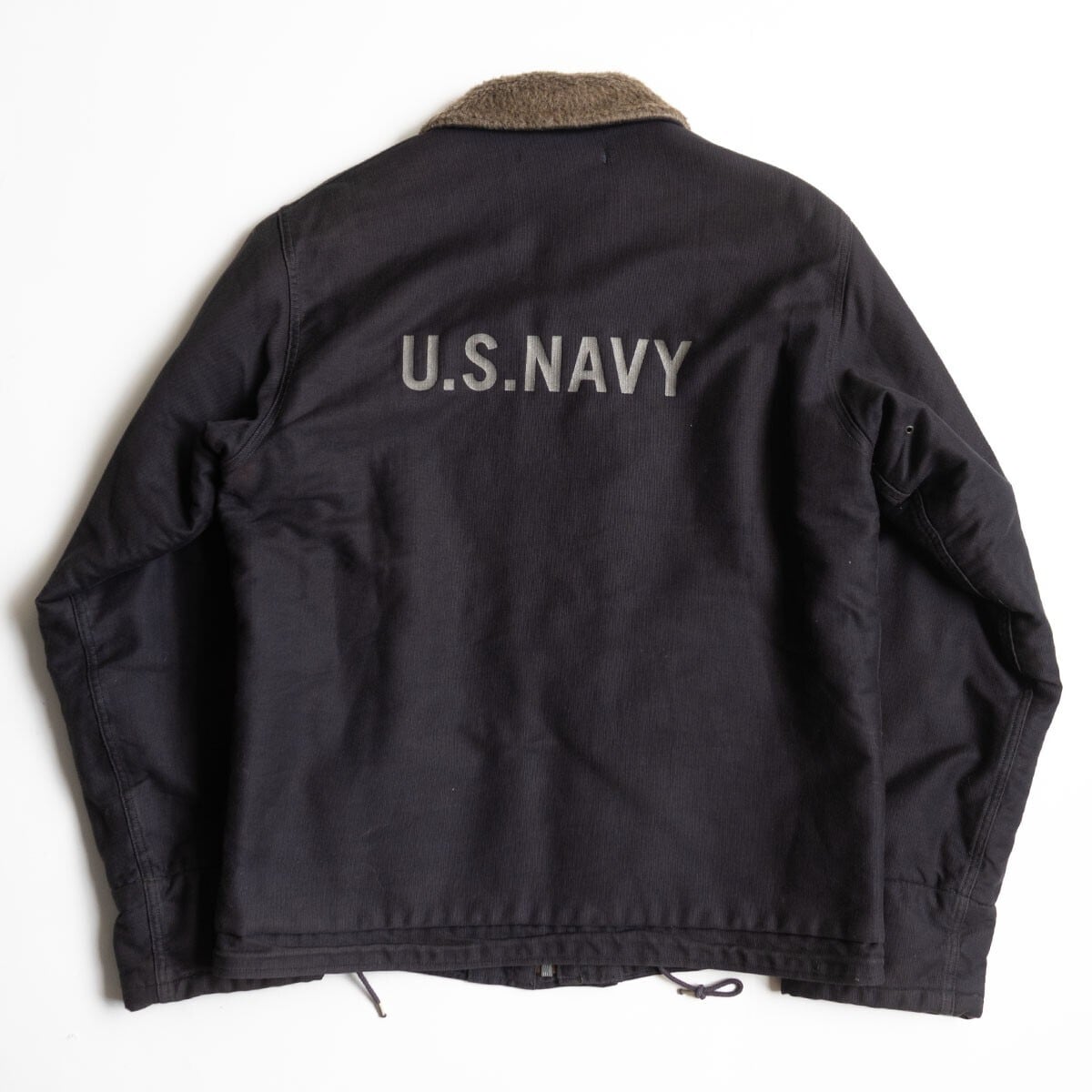 第二次世界大戦から朝鮮戦争にかけ米海軍の艦艇乗員用として採用されたN-1デッキジャケット。こちらの表素材には他のデッキジャケットと同様で通称"ジャングルクロス"と呼ばれるコットングログランが使用され、裏地には遮風性と保温性に優れたアルパカ・モヘア・ウールパイルが使用されています。防寒性抜群の1着です。
