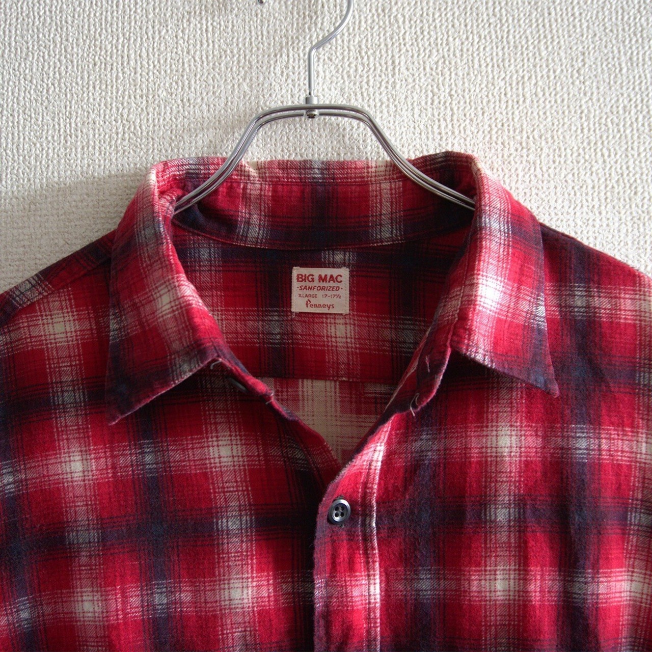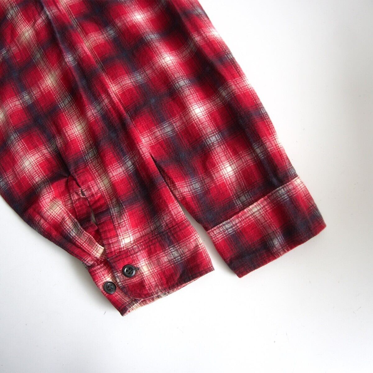 赤×黒×白のオンブレチェックのプリントネルシャツ。希少なビッグサイズになります。