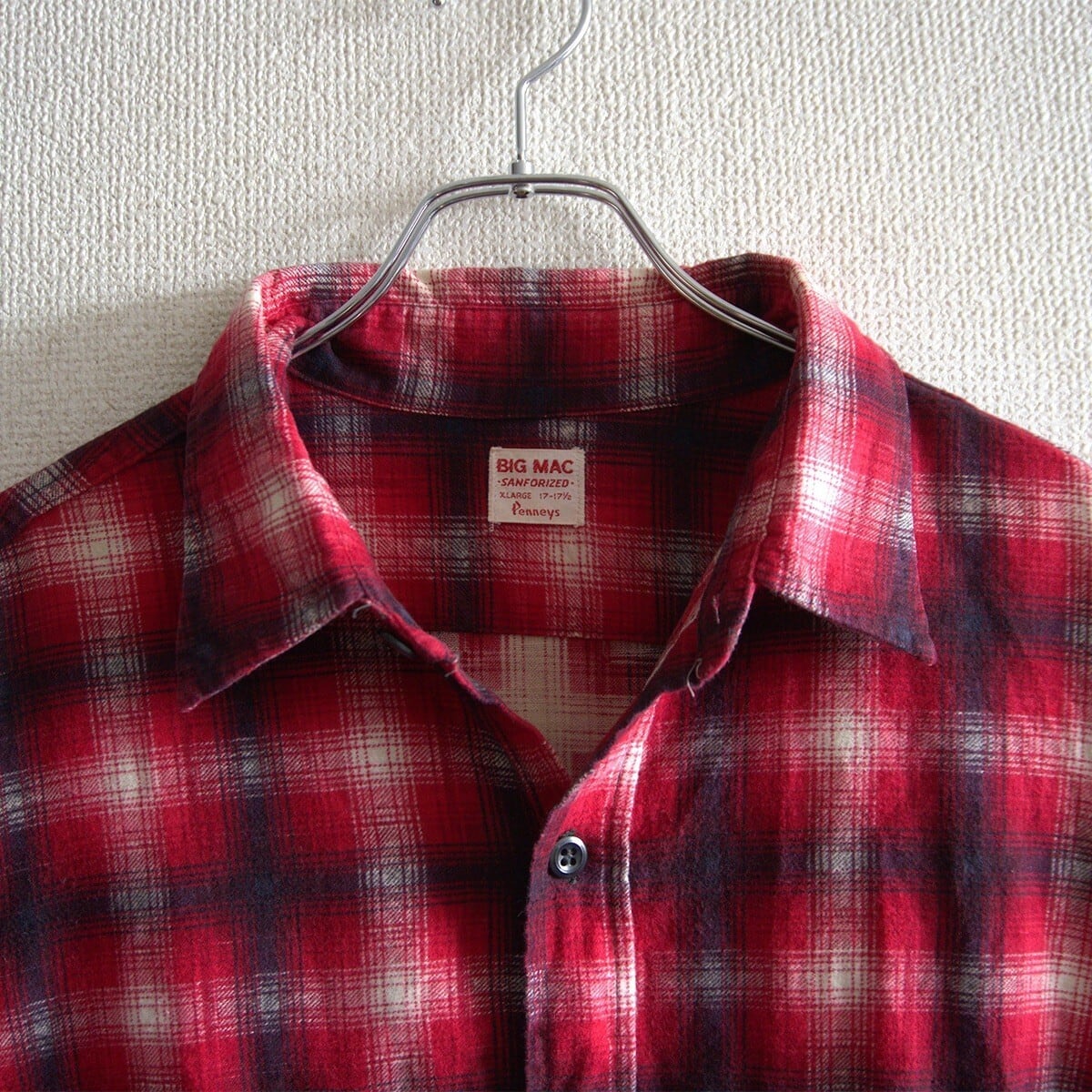 【60S/ビッグサイズXL】BIG MAC【オンブレチェック プリントネルシャツ】17-17 1/2 ヴィンテージ ビッグマック 25090672