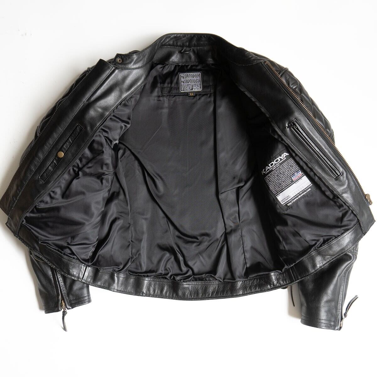 【美品/ビッグサイズ】KADOYA【EVO パデッド シングルライダースジャケット】 LL カドヤ レザー ブラック バイク バイカー 25090796