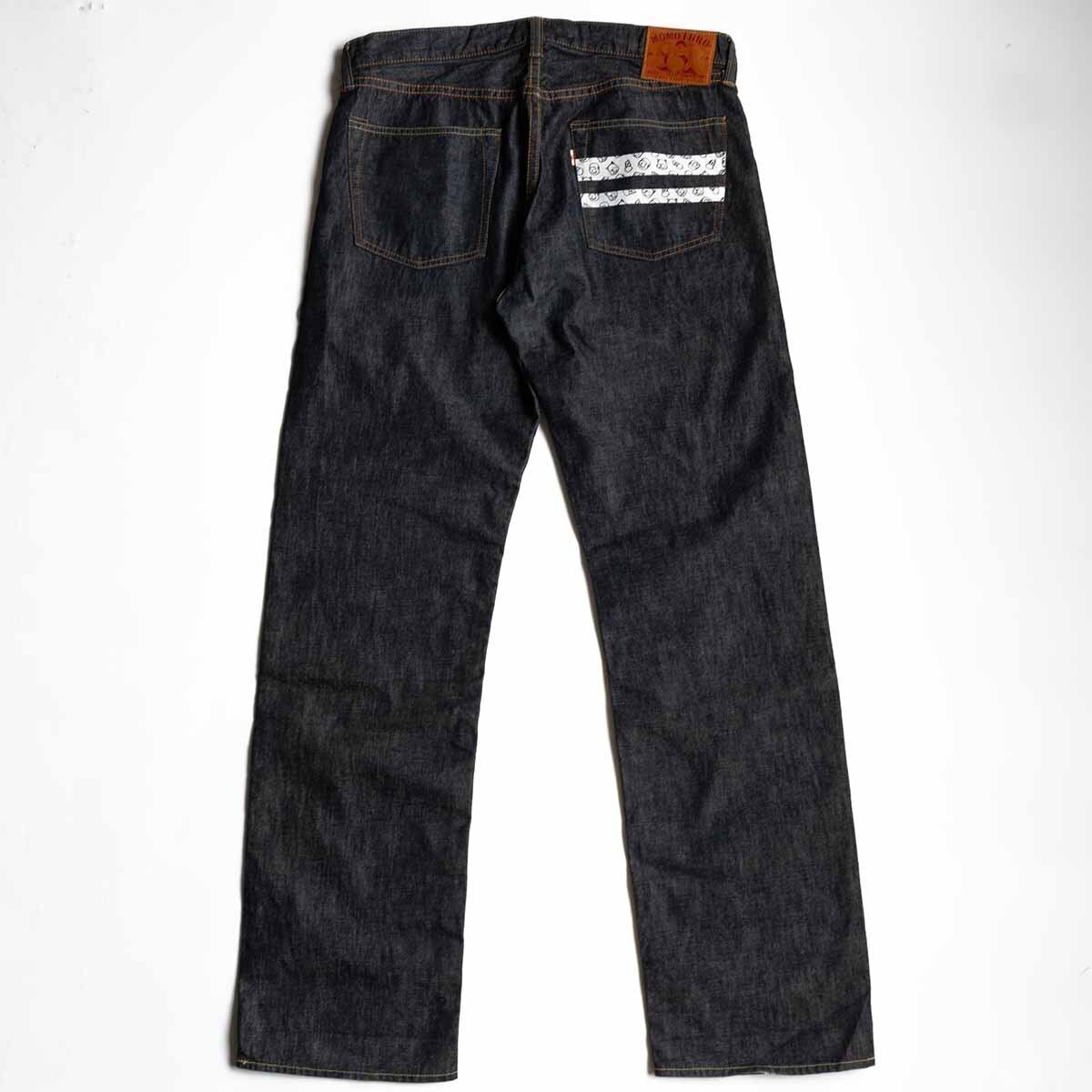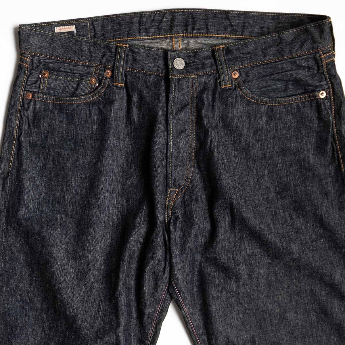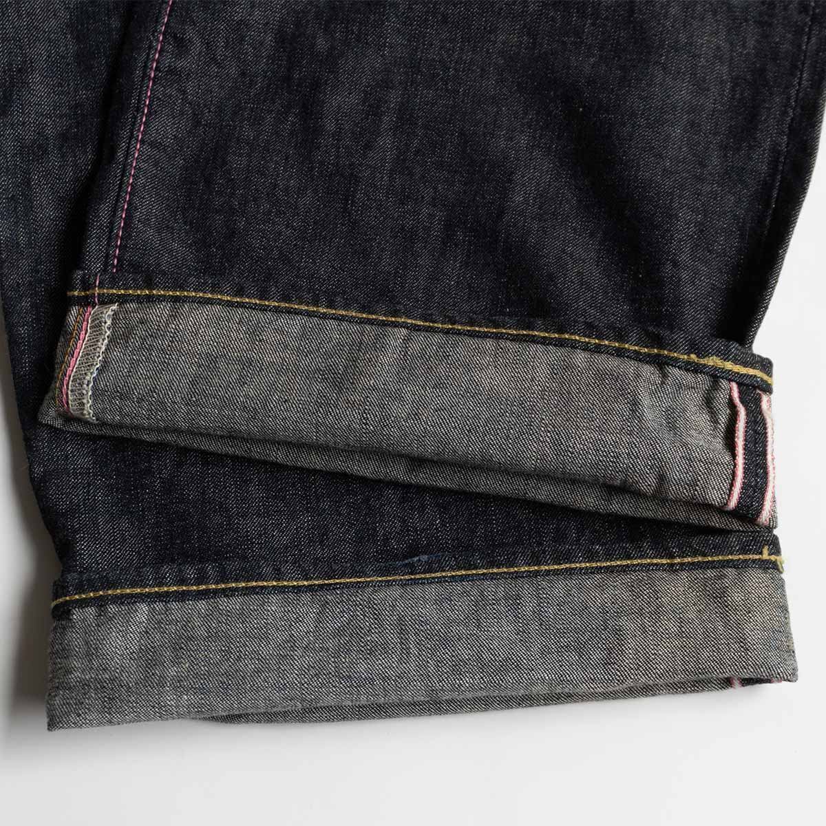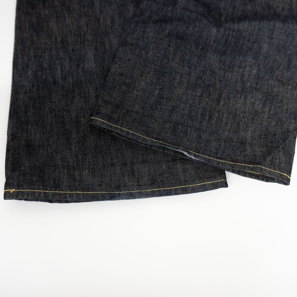 ロープ染色を繰り返し特濃インディゴブルーに染めたジンバブエコットン使用した1本。モモからスソまでは若干のゆとりを持たせたミドルフィットです。これから経年変化をお楽しみいただけます。