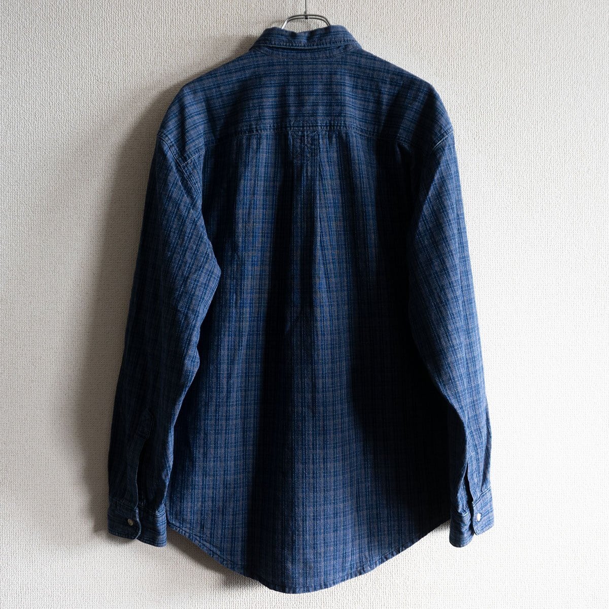雰囲気の良いインディゴチェック地のボタンダウンシャツです。