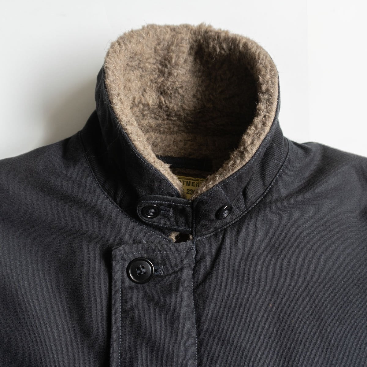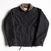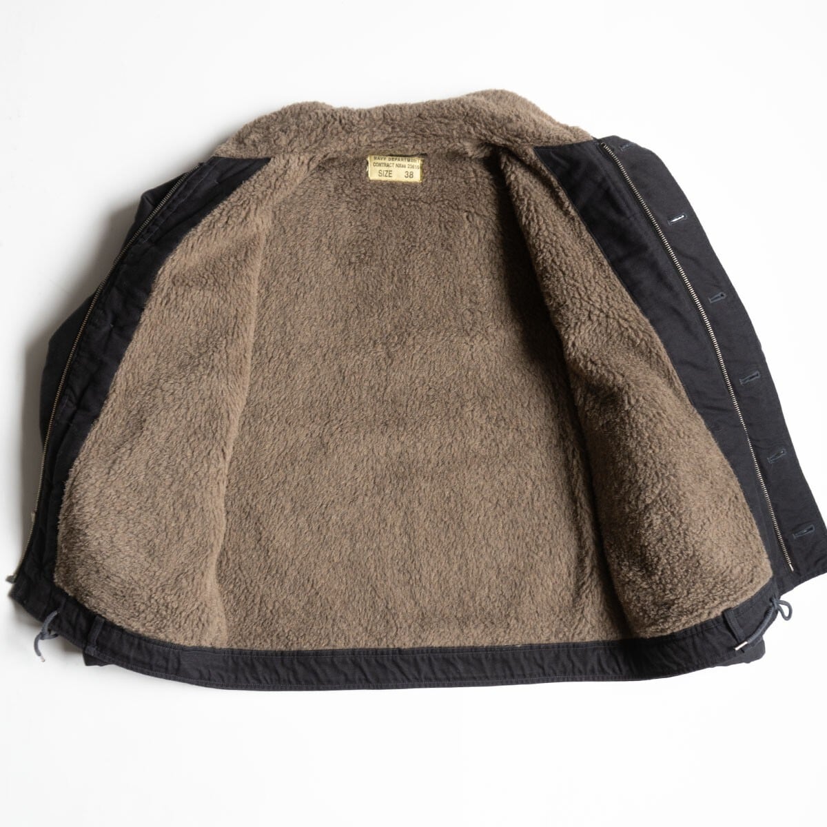 第二次世界大戦から朝鮮戦争にかけ米海軍の艦艇乗員用として採用されたN-1デッキジャケット。こちらの表素材には他のデッキジャケットと同様で通称"ジャングルクロス"と呼ばれるコットングログランが使用され、裏地には遮風性と保温性に優れたアルパカ・モヘア・ウールパイルが使用されています。防寒性抜群の1着です。