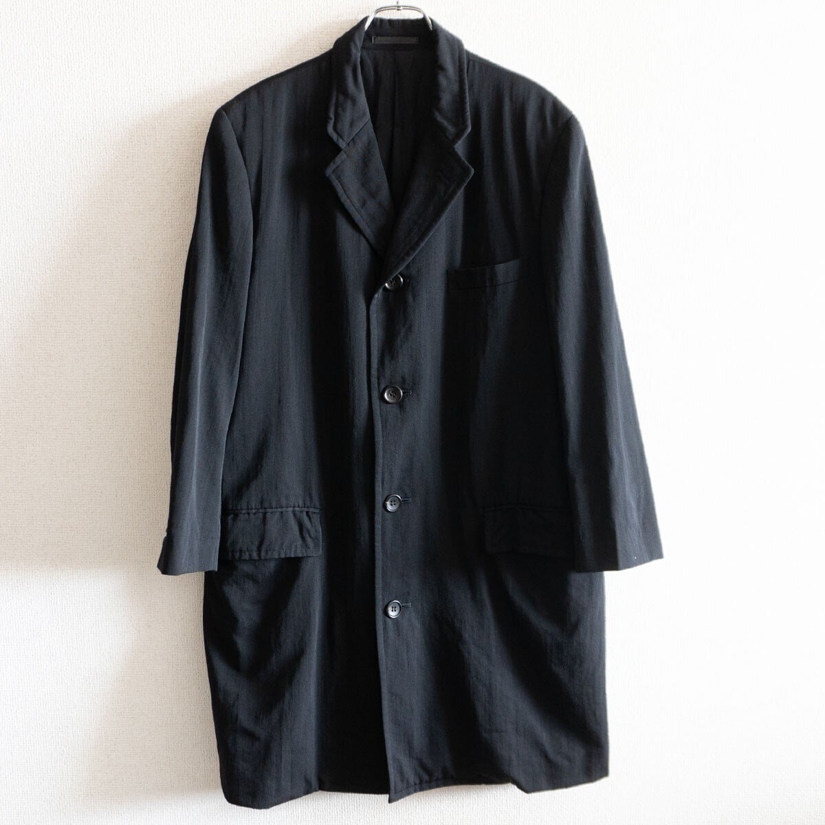 90年代のチェスターコート。身幅の広いワイドシルエットでゆったりとした着用感です。袖にはリブが付きます。