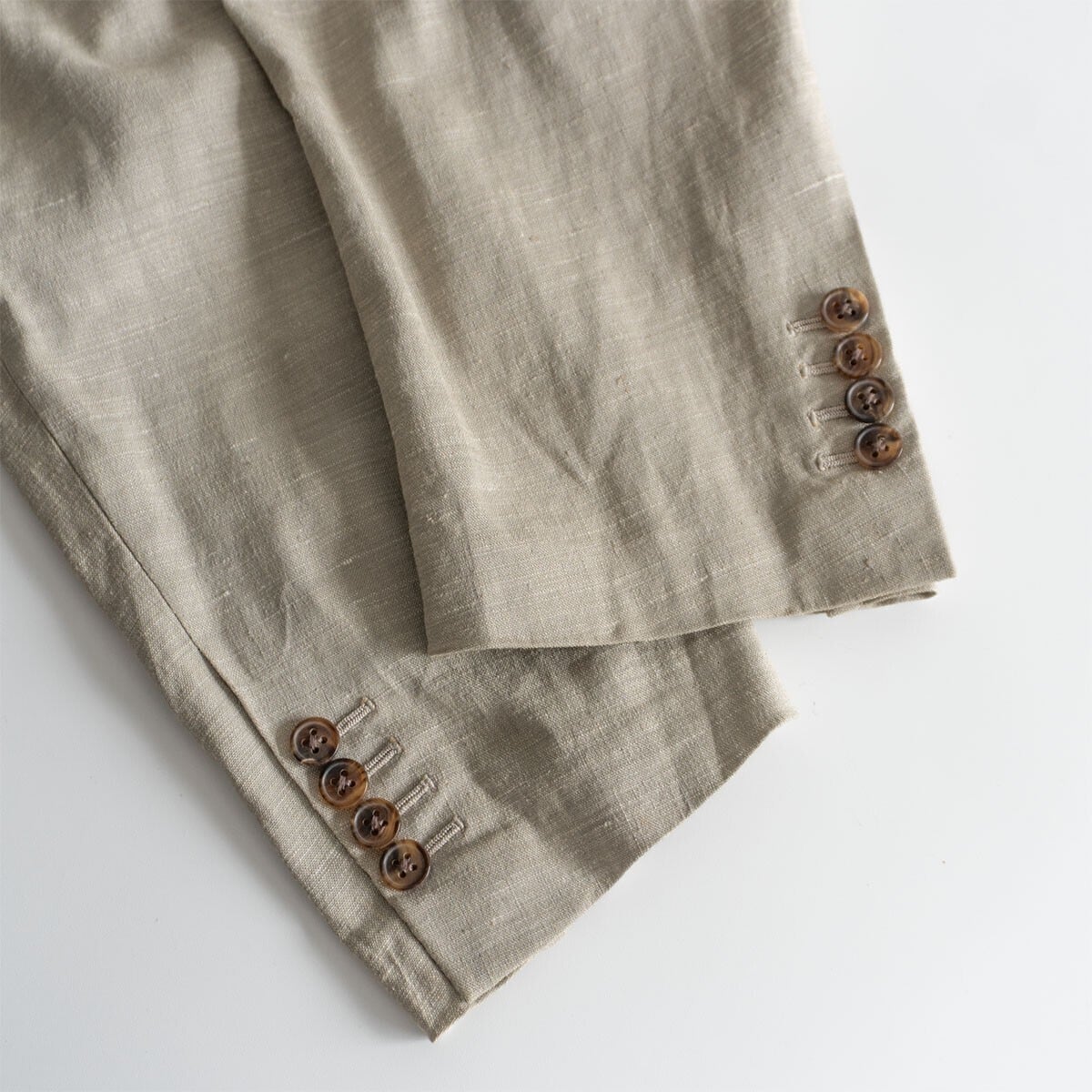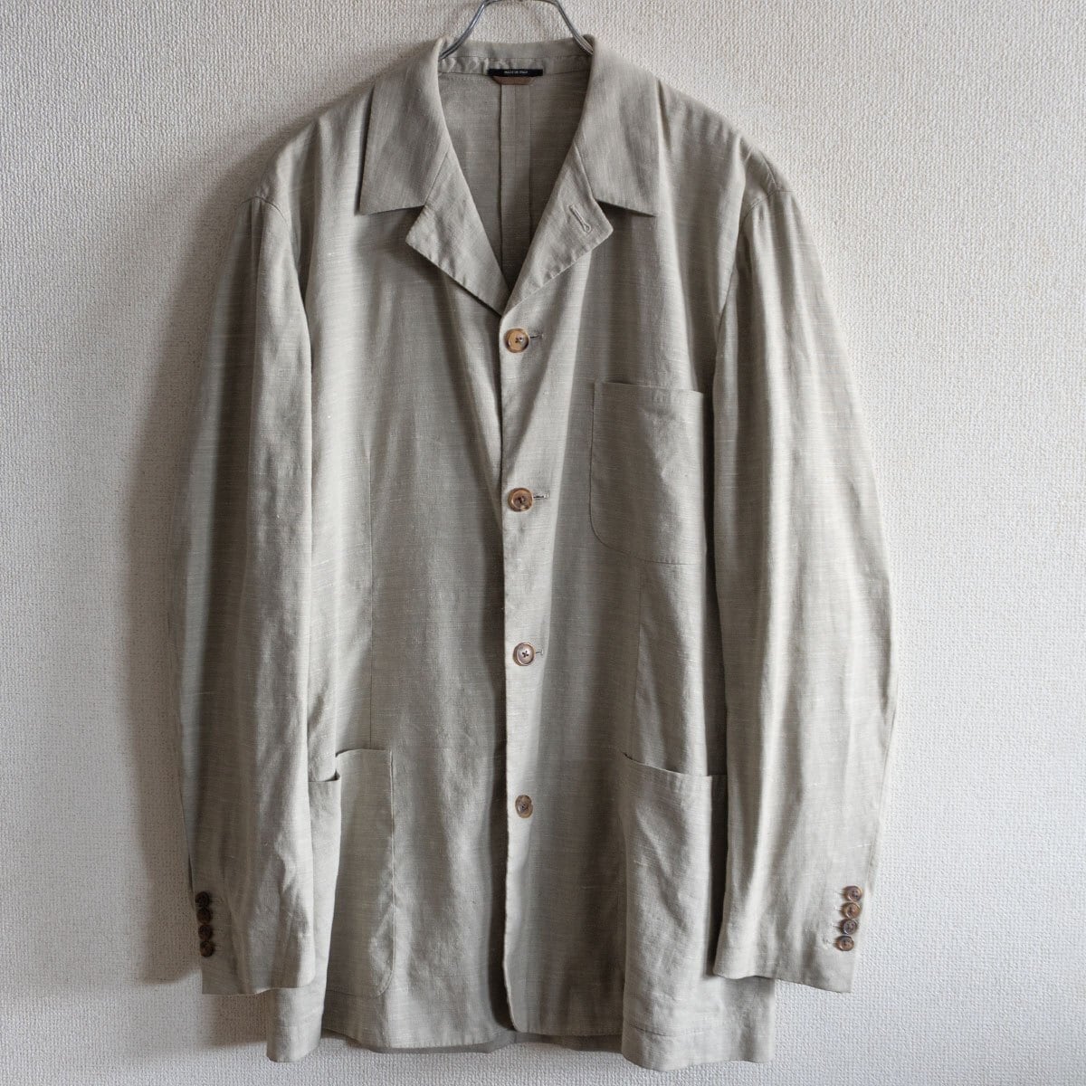 上質なリネンレーヨン素材のジャケットです。ネップ感のある素材でハリがございます。