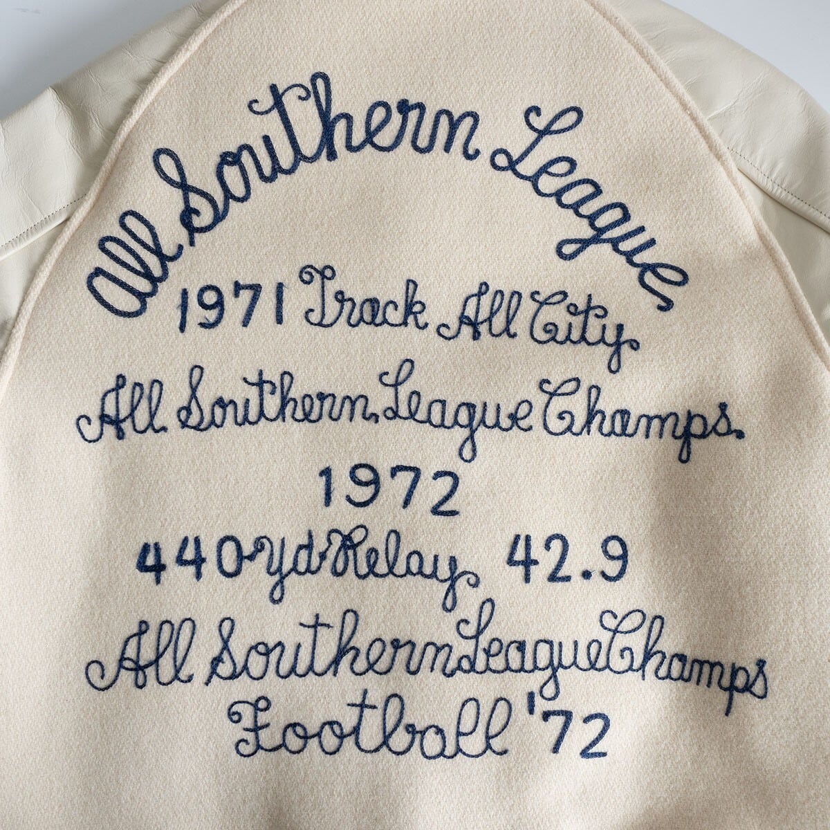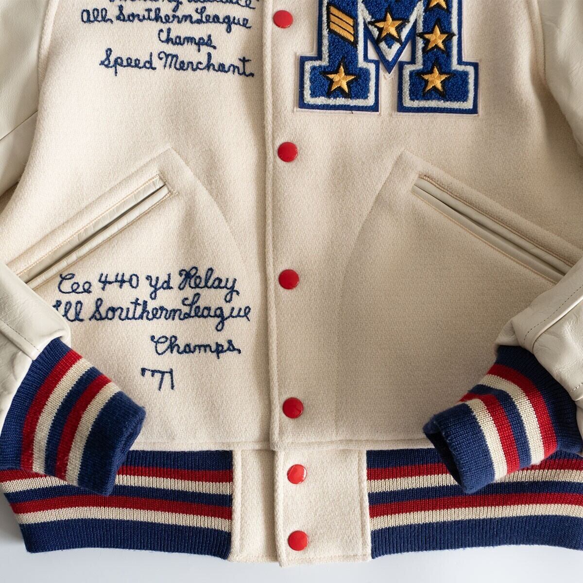 レザースリーブ仕様のスタジャン。雰囲気や風合いも抜群の一着です。お探しの方や気になる方は是非。