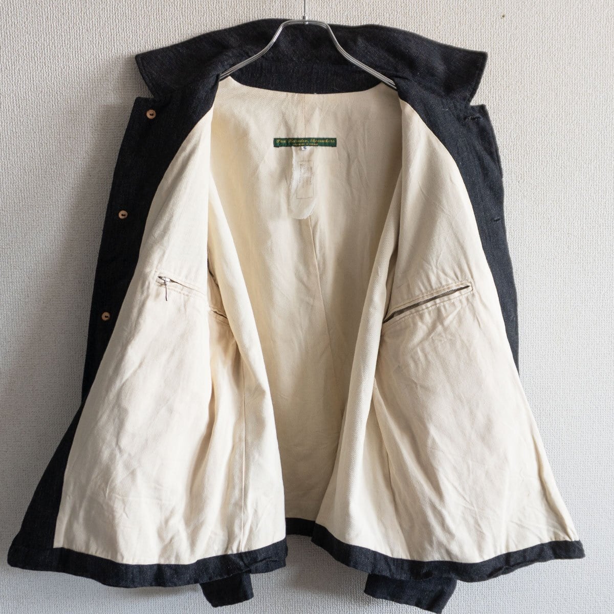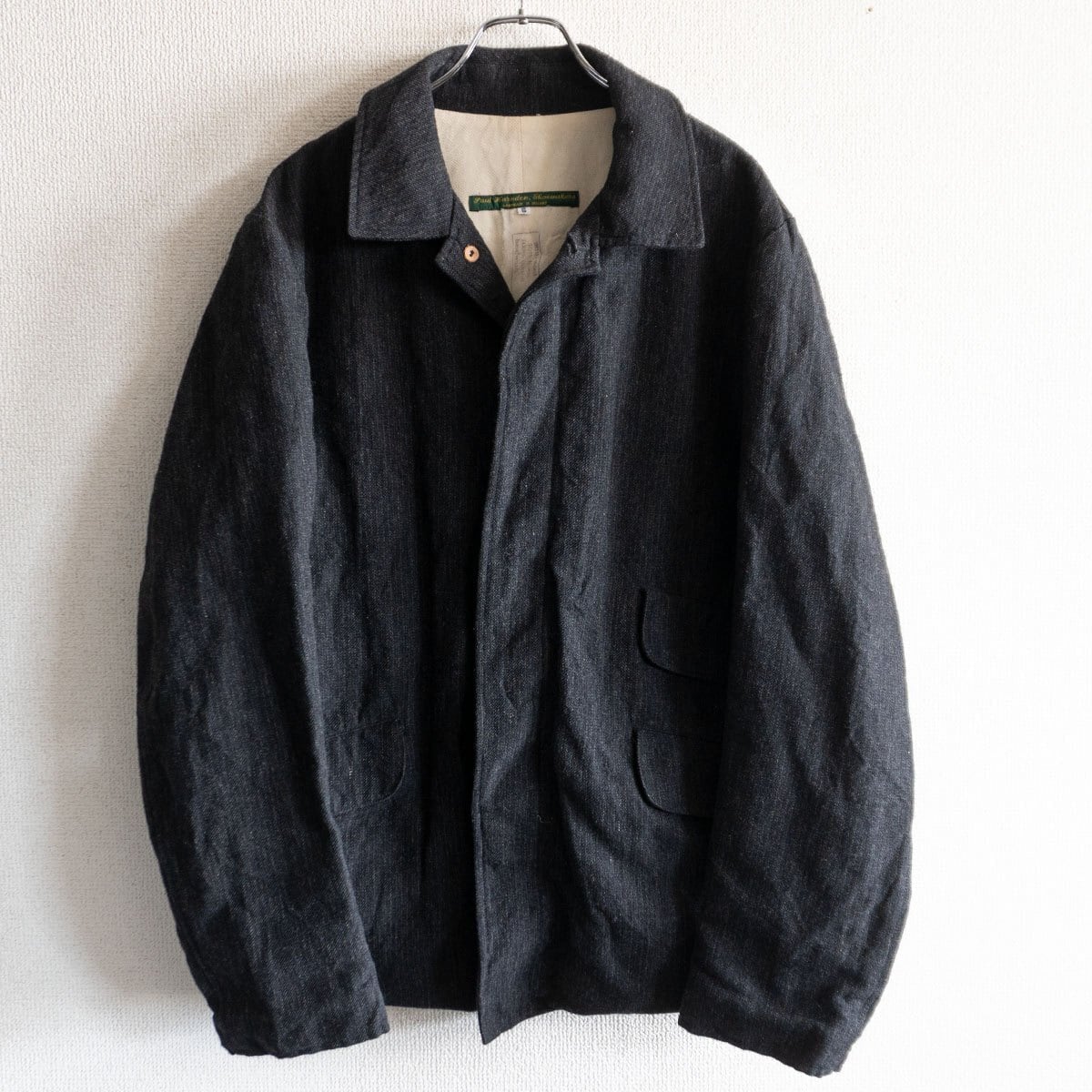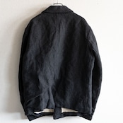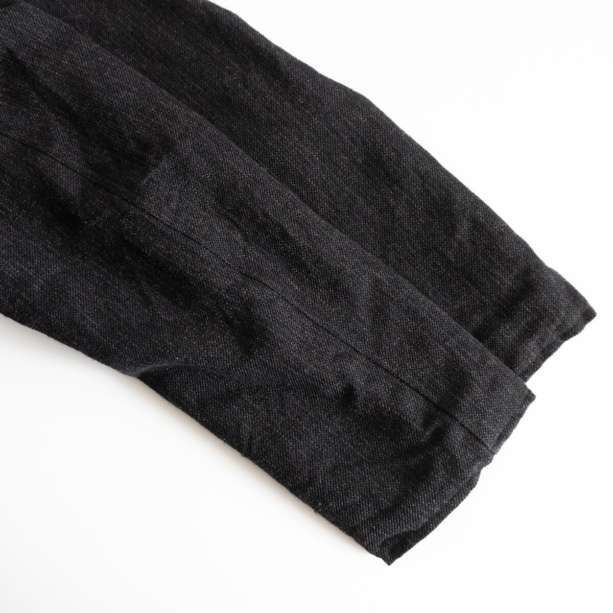 ウールリネンツイード素材を使用したマックジャケット。お色はダークグレーで柄が入った素材です。