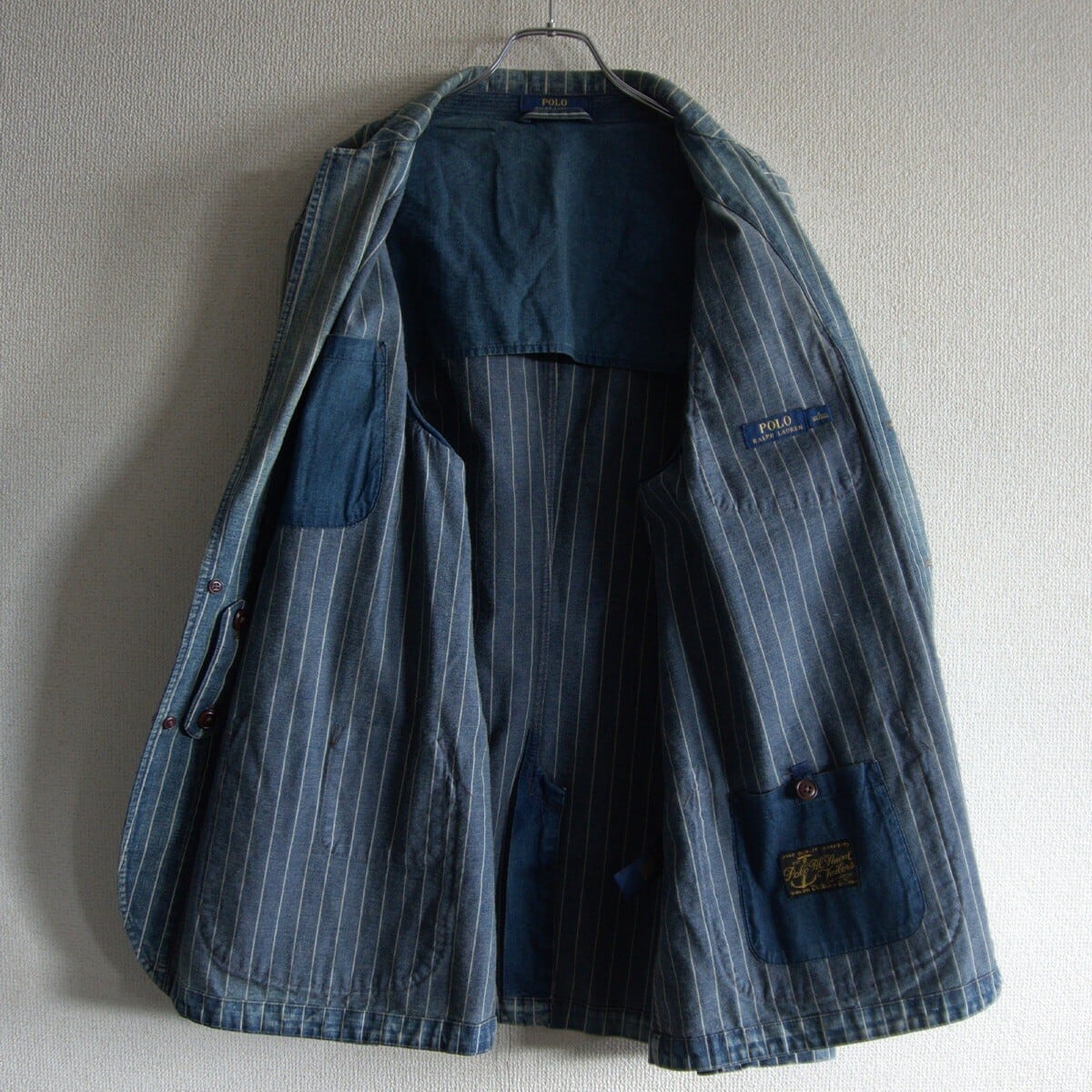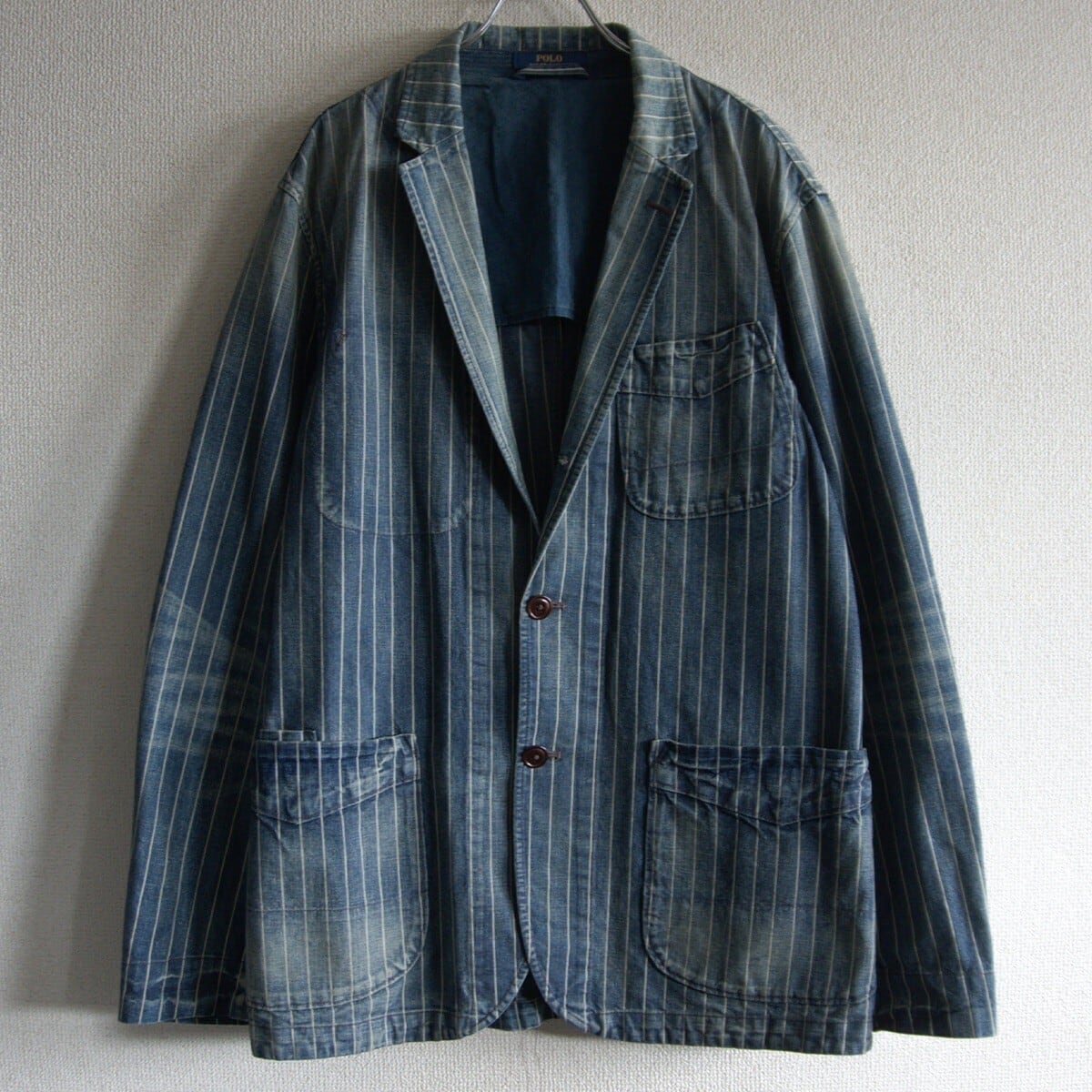 【美品】POLO RALPH LAUREN【INDIGO STRIPE SPORTSCOAT】L ストライプ ジャケット スポーツコート ポロラルフローレン 25100081