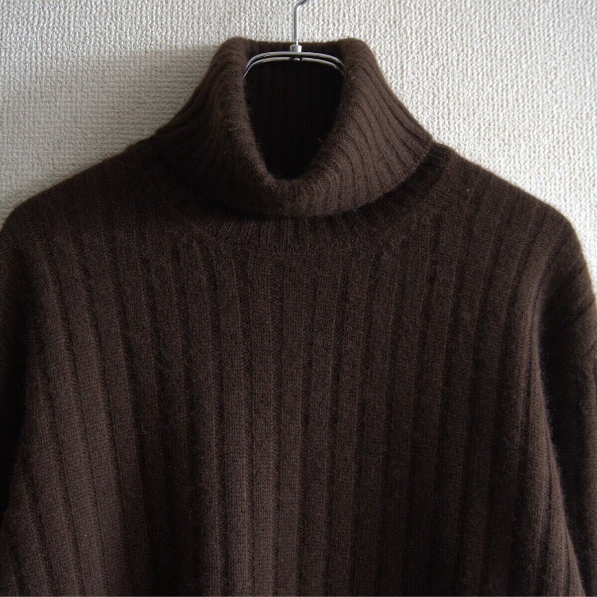 カシミヤ100%のタートルネックセーター。お色はブラウンです。良い物をお探しの方は是非。