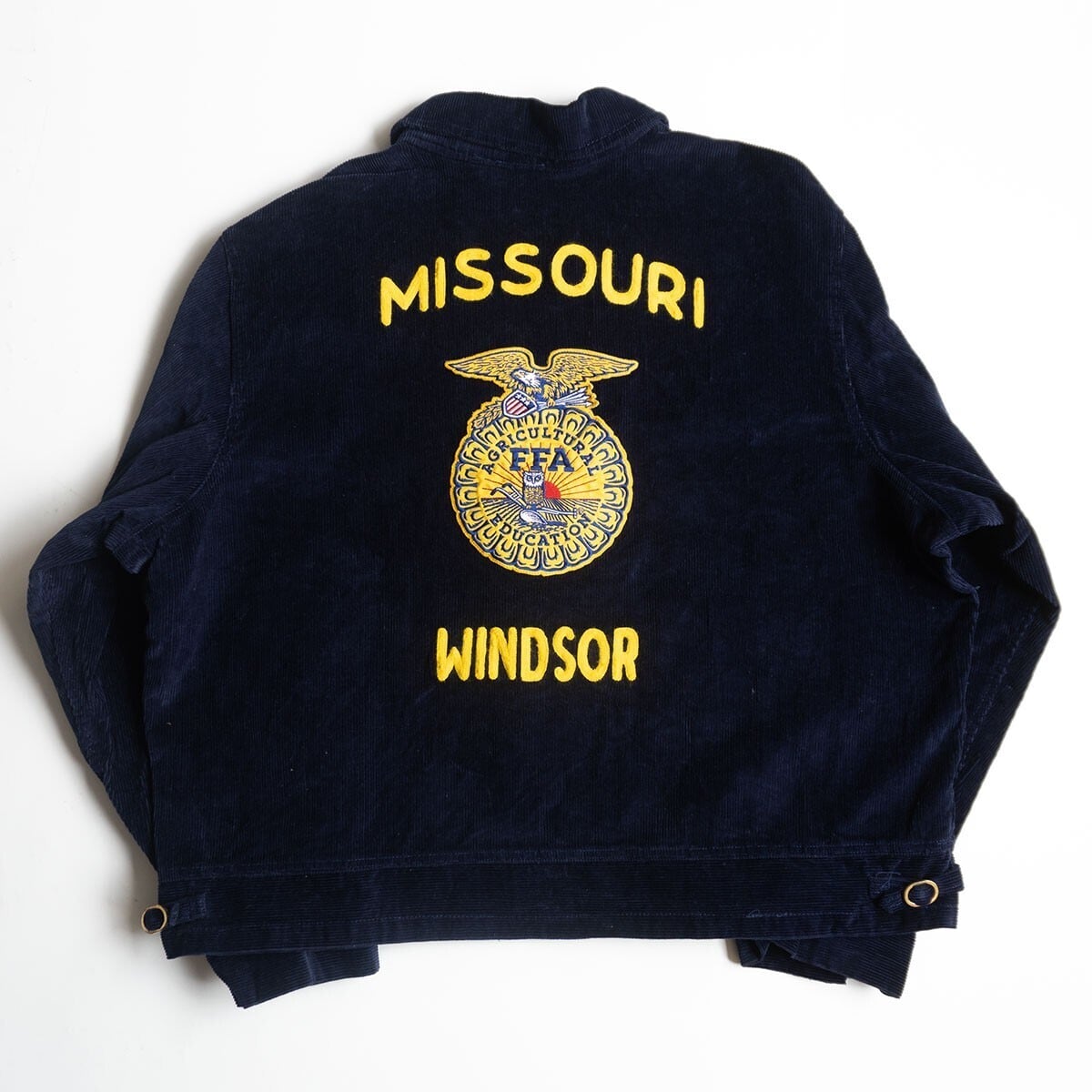 FFAとはFuture Farmars of Americaの頭文字をとった略称でアメリカ合衆国学校農業クラブ連盟のことを指します、『みんなでアメリカの農業の未来を考えていきましょう』という意味になります。その団体のユニフォームとして使用されていたのがこのFFAジャケットです。カラーは紺をベースに前後にはFFAのワッペン後ろにはワッペンの上に各州のチェーンステッチが入っています。お探しの方や気になる方は是非。