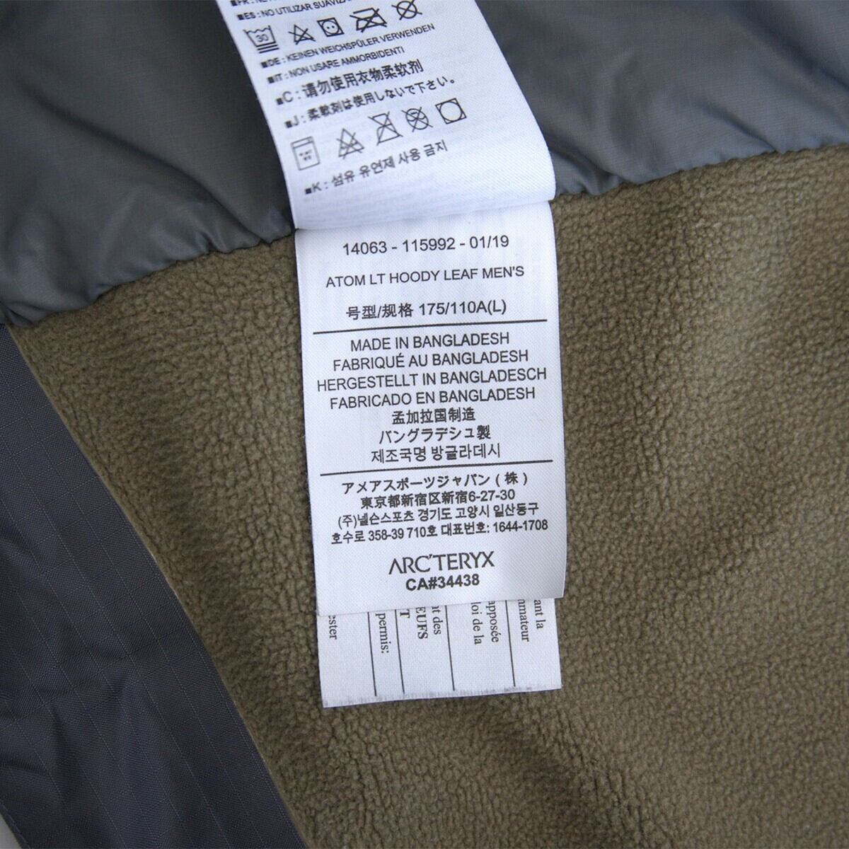 【希少美品】 ARC'TERYX 【LEAF Atom LT Hoody Gen 2.1】 L リーフ アークテリクス アトム フディー ジャケット 25090809