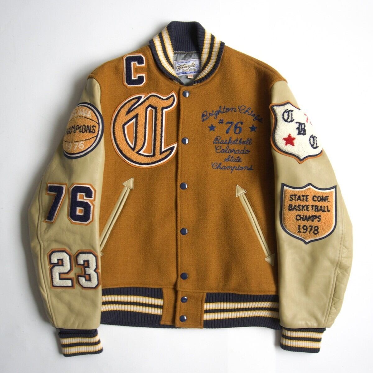 レザースリーブ仕様のスタジャン。雰囲気や風合いも抜群の一着です。