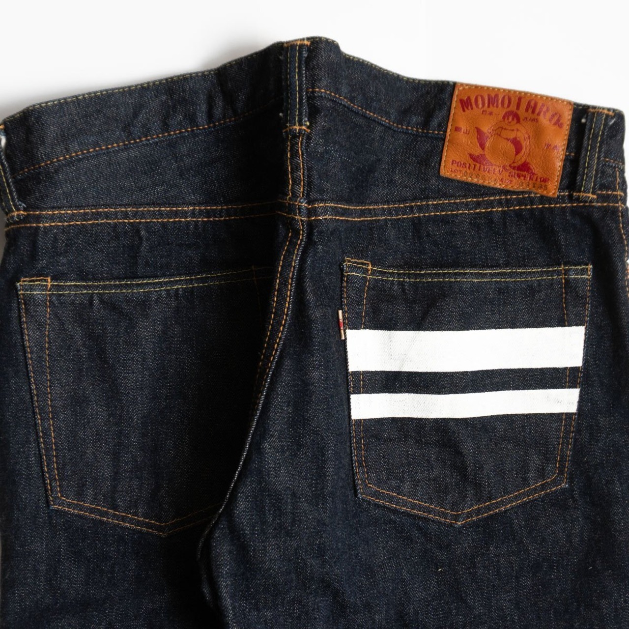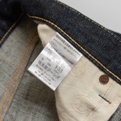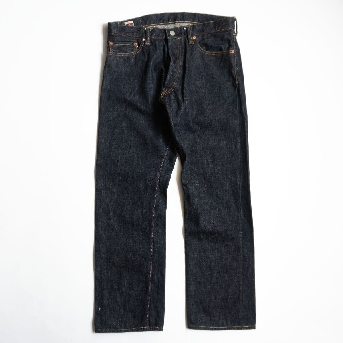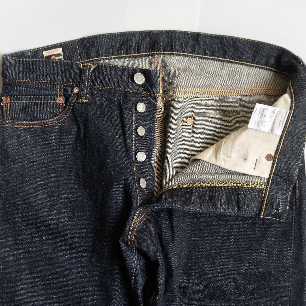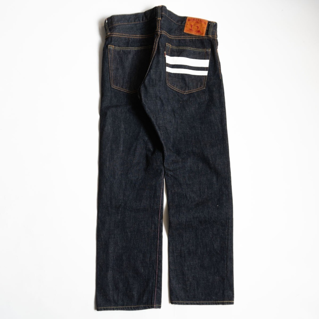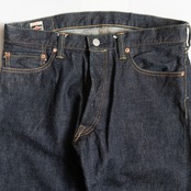 ロープ染色を繰り返し特濃インディゴブルーに染めたジンバブエコットン使用した1本。モモからスソまでは若干のゆとりを持たせたミドルフィットです。これから経年変化をお楽しみいただけます。