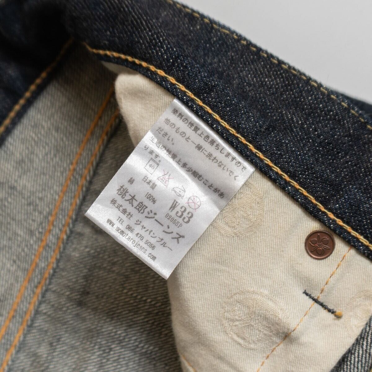 【美品/濃紺】 桃太郎ジーンズ【0205SP/出陣スリムストレート ボタンフライ】33×35 デニムパンツ s2510037