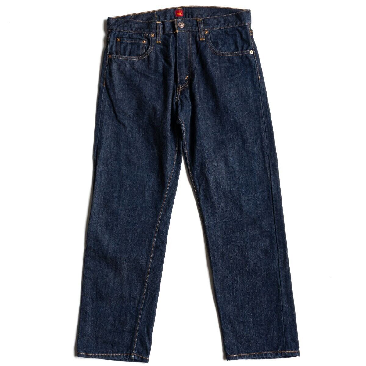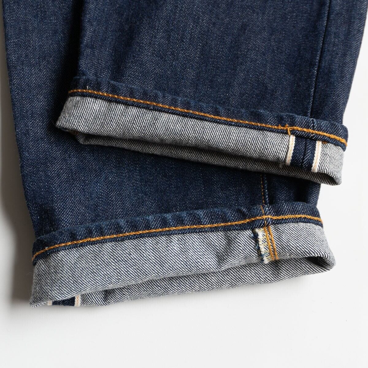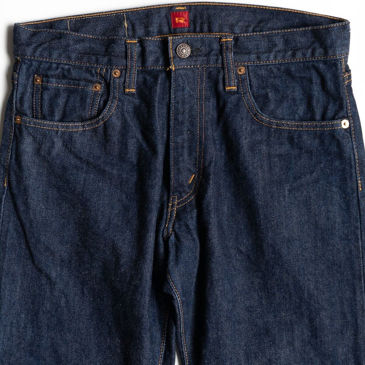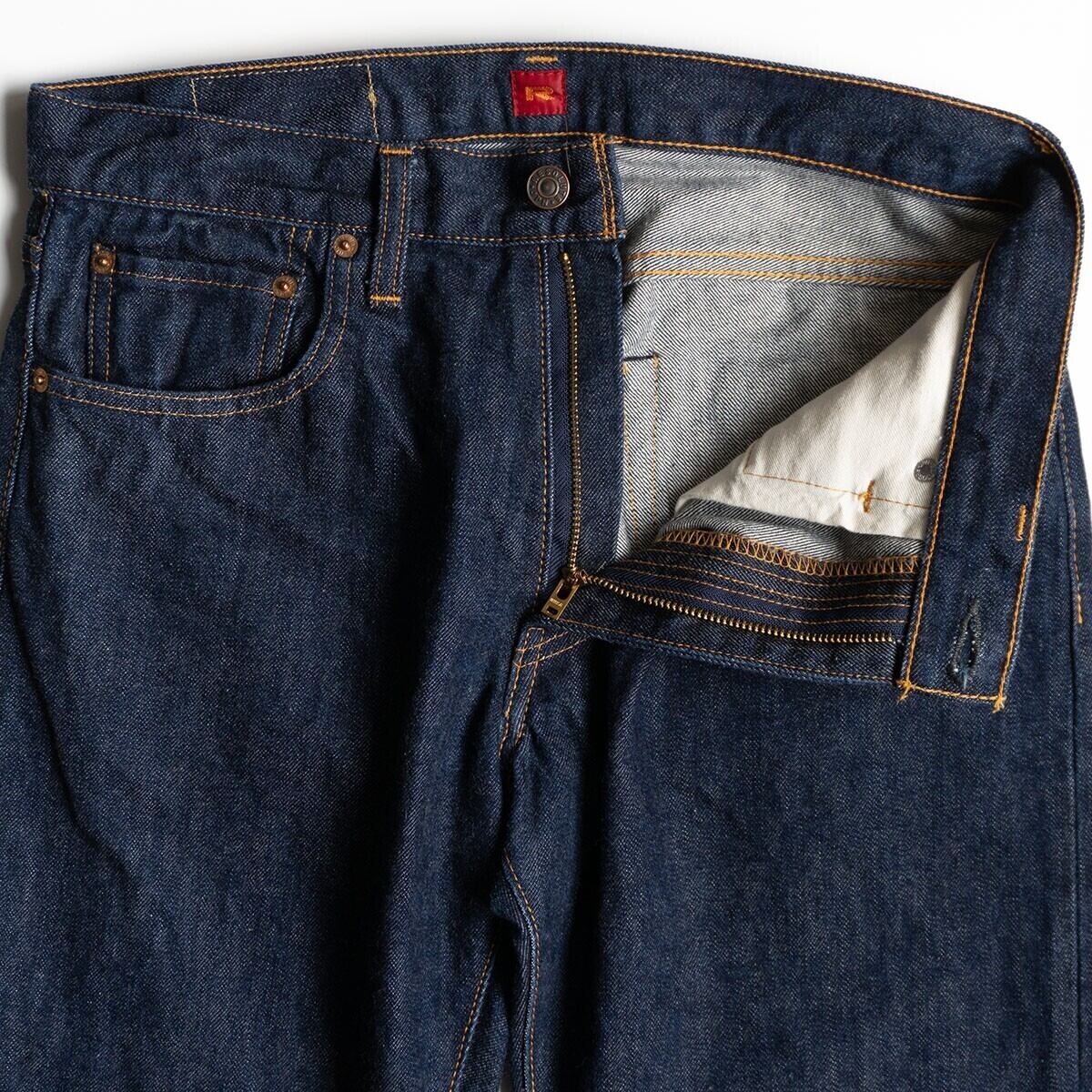 股上が浅く、膝から裾にかけてテーパードがかかっているストレート。これから経年変化をお楽しみいただけます。