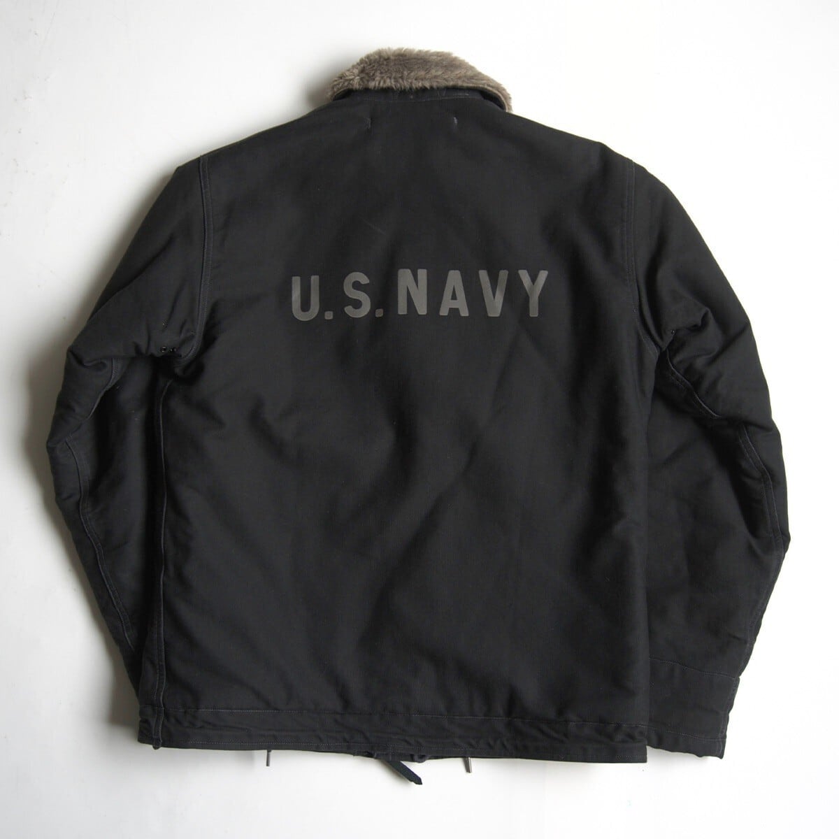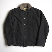 第二次世界大戦から朝鮮戦争にかけ米海軍の艦艇乗員用として採用されたN-1デッキジャケット。こちらの表素材には他のデッキジャケットと同様で通称"ジャングルクロス"と呼ばれるコットングログランが使用され、裏地には遮風性と保温性に優れたアルパカ・モヘア・ウールパイルが使用されています。防寒性抜群の1着です。