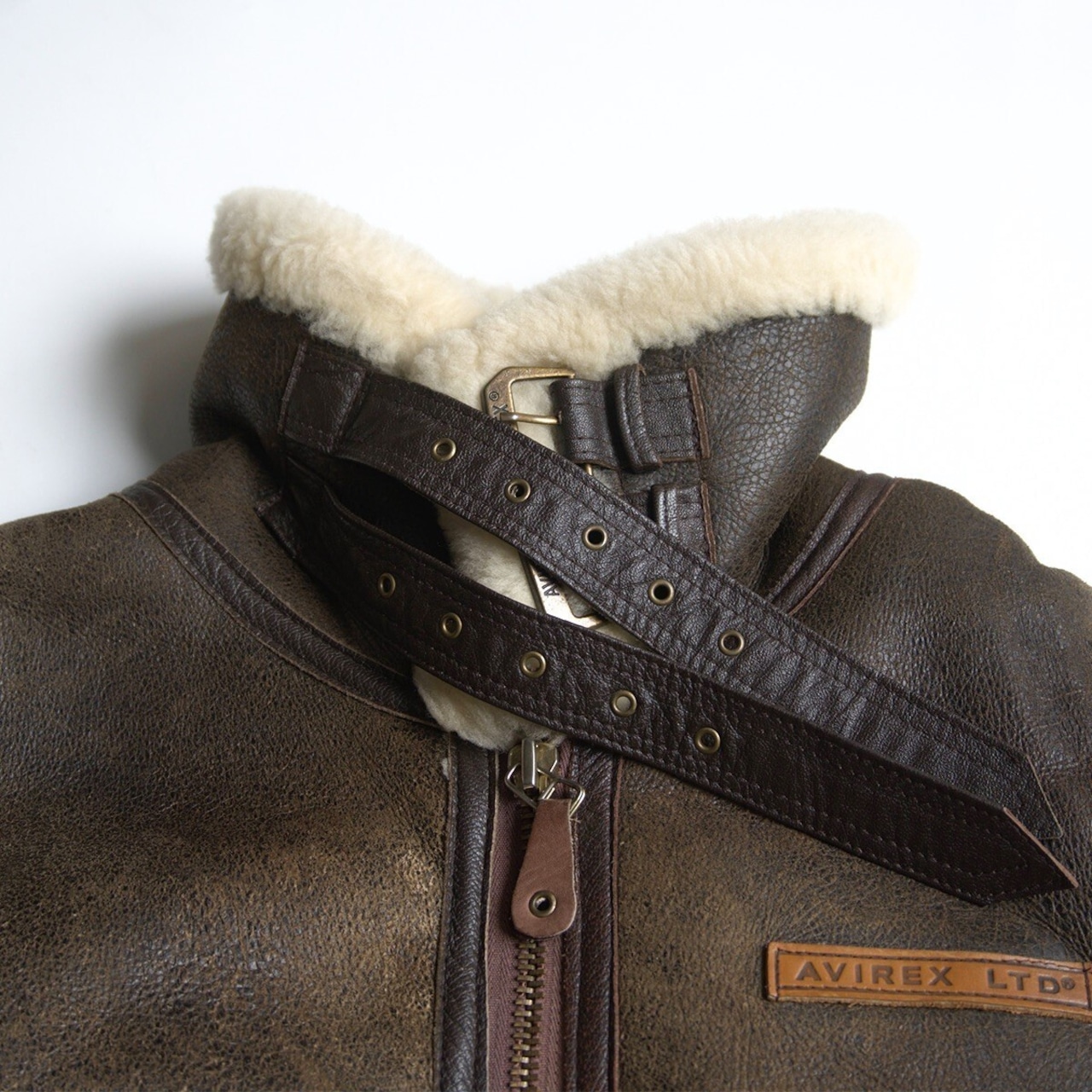 【胸ロゴ】AVIREX【B-3 ムートンボンバージャケット】38 ブラウン アヴィレックス フライト レザー ジャケット 25100463