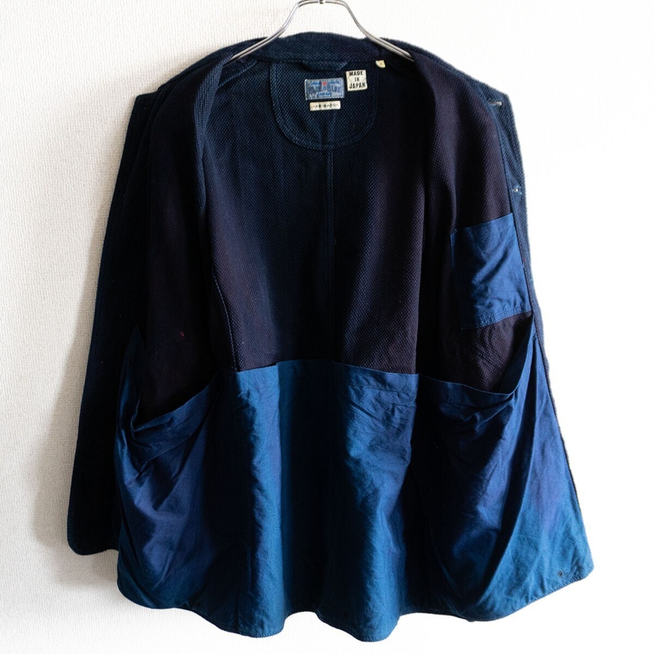 細かい粒状の刺し子生地を使用したハンティングジャケットです。一点一点手作業でインディゴ染めを施し、使い込む事で経年変化もお楽しみいただけます。お探しの方や気になる方は是非。