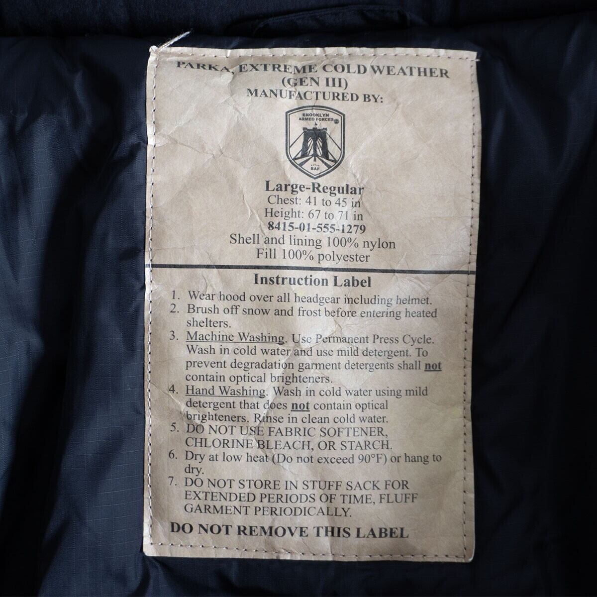 【美品】BAF 【GEN3 Level7 PrimaLoft JKT】LARGE-REGULAR レベル7 プリマロフト ジャケット 25100720
