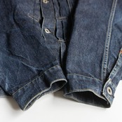 リーバイスの1stジャケットの506xxをベースに作成した人気モデル。フラップ無しポケット、月桂樹ボタン、針刺しシンチバックなど、細部のディテールもしっかり再現されており、色落ち、アタリ、ステッチのほつれ具合などリアルに着込まれたようなヴィンテージのような雰囲気が抜群。良いものをお探しの方は是非。