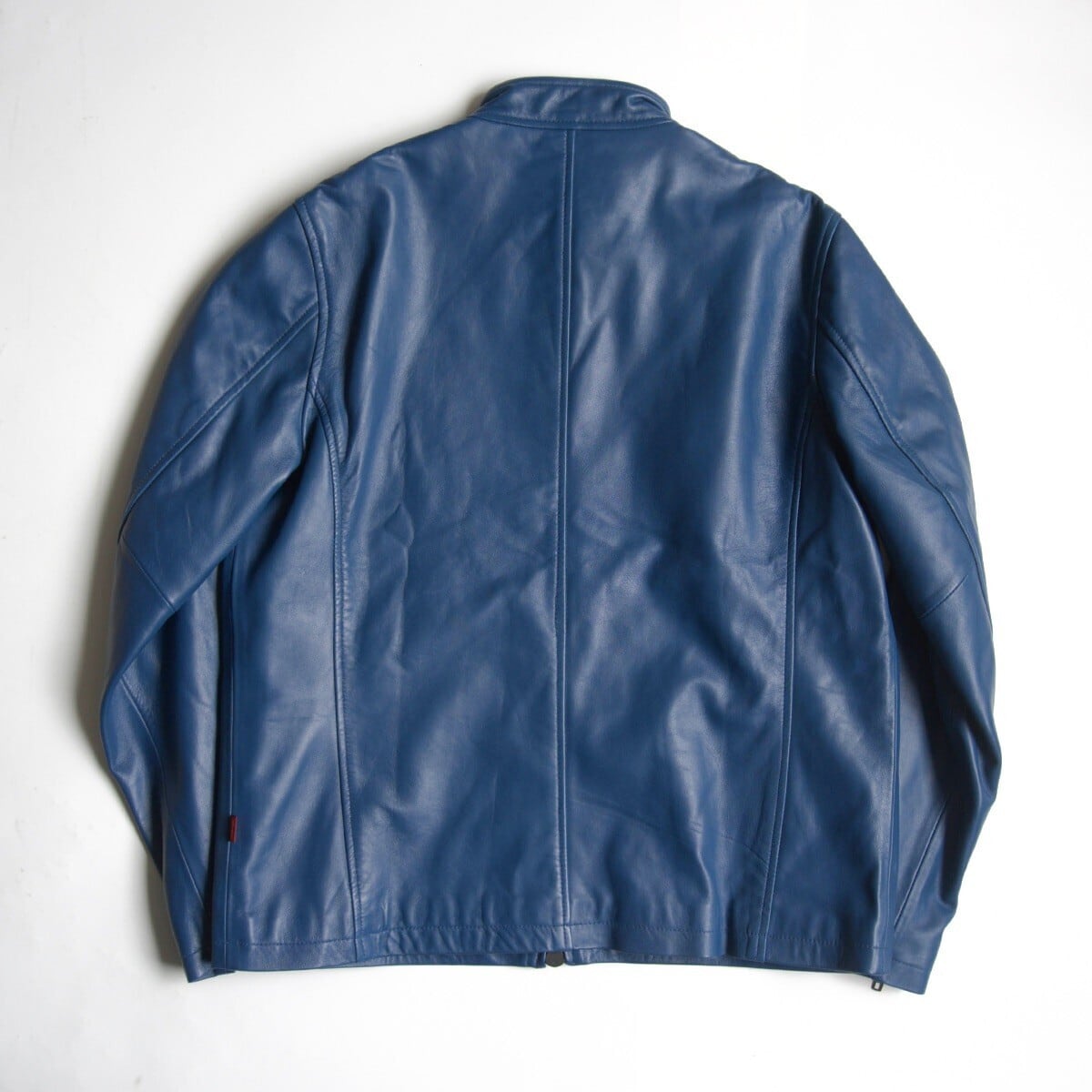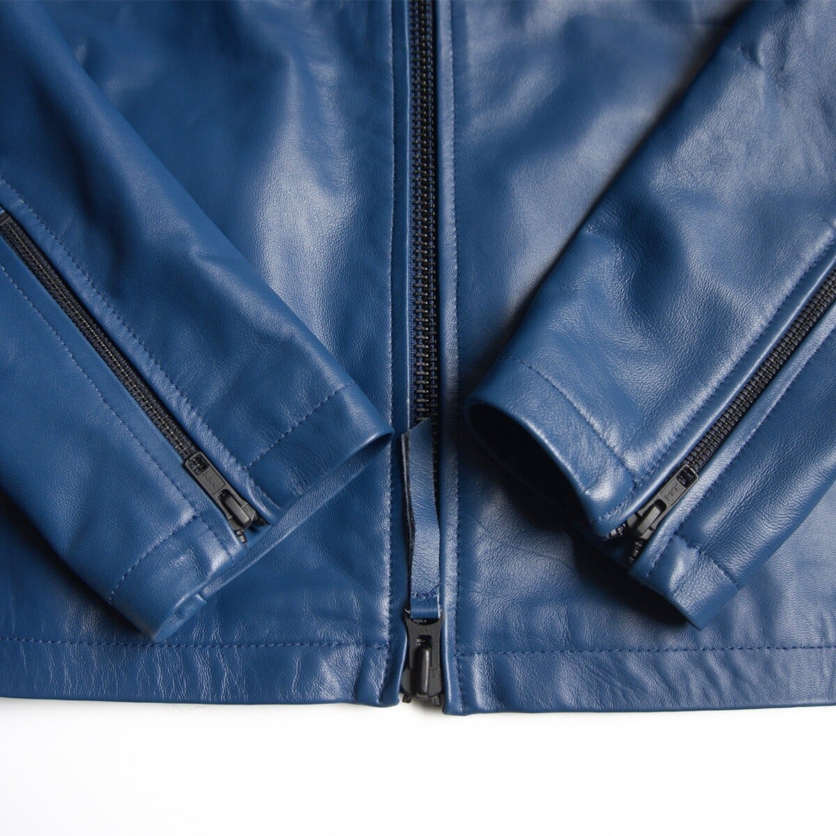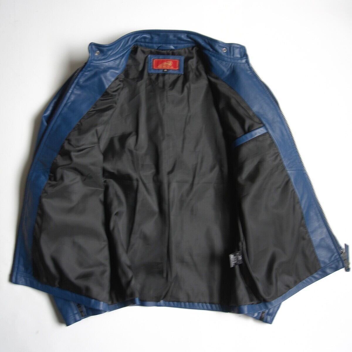 【美品】INDIAN MOTORCYCLE【シープスキン シングルライダースジャケット】XL ブルー レザー インディアンモーターサイクル 25100650