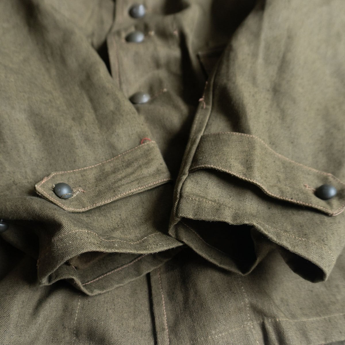 1930年代から40年代頃にフランス軍で使用されていたモーターサイクルジャケット。希少なショートコートモデルです。素材は厚手のリネン。