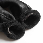 ボディには肉厚ながらモチっとした弾力性を持つ上質のシープスキン(羊革)が使用されております。裏地にはふかふかのムートンボアが敷き詰められ最高の着心地・防寒性を誇ります。