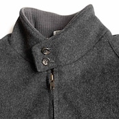 メルトンウールにカシミヤが20%混紡した生地のジャケットです。お色はチャコールグレーお探しの方や気になる方は是非。
