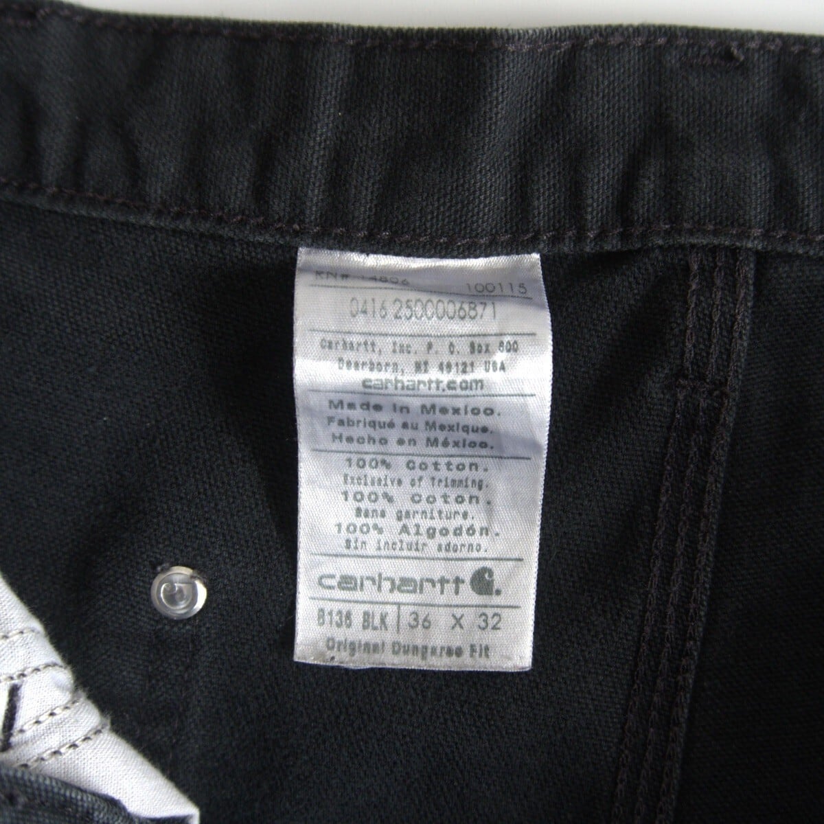 【雰囲気抜群】Carhartt【ダブルニー ペインターパンツ】36 ブラック ダメージ メキシコ製 ダック カーハート 古着 s2510123
